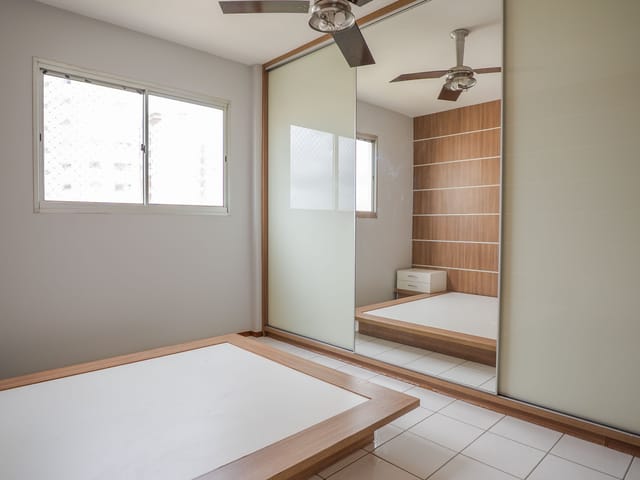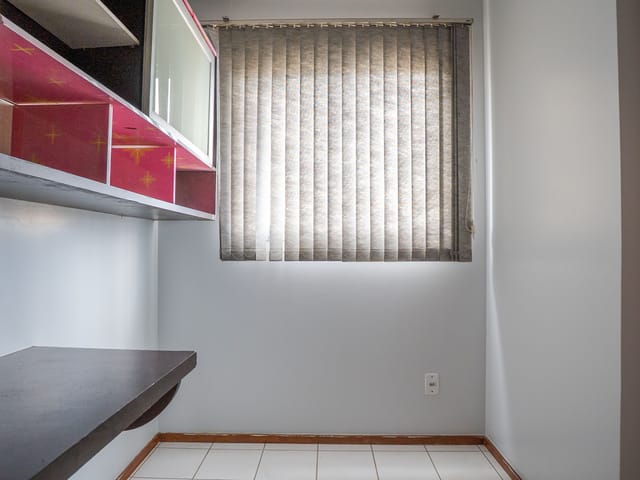 Imóvel possui 2 quartos já estão com armários modernos e espelho, sendo 1 suíte convencional e 1 suíte americana, cozinha também está recheada de armários e está integrada com a sala,1 vaga de garagem .