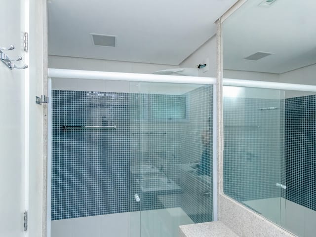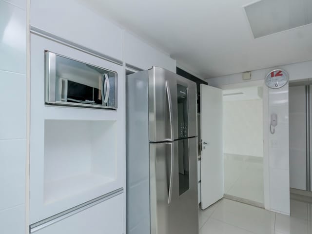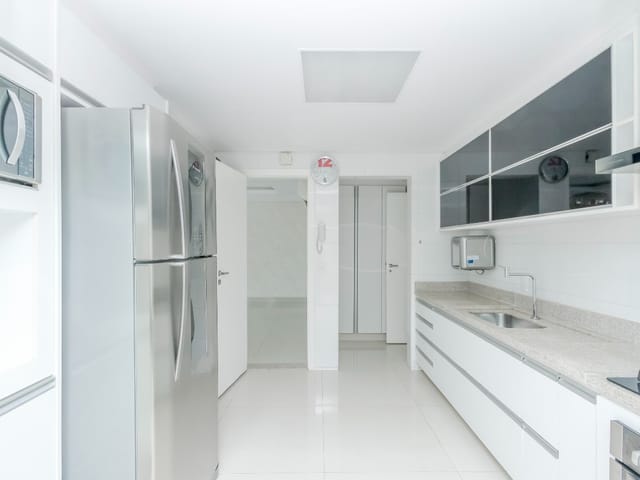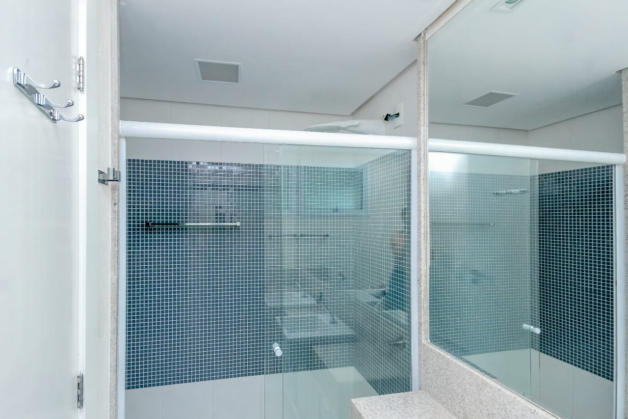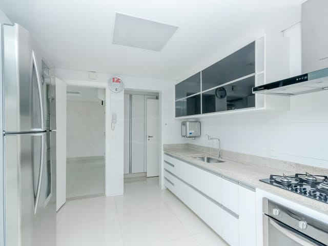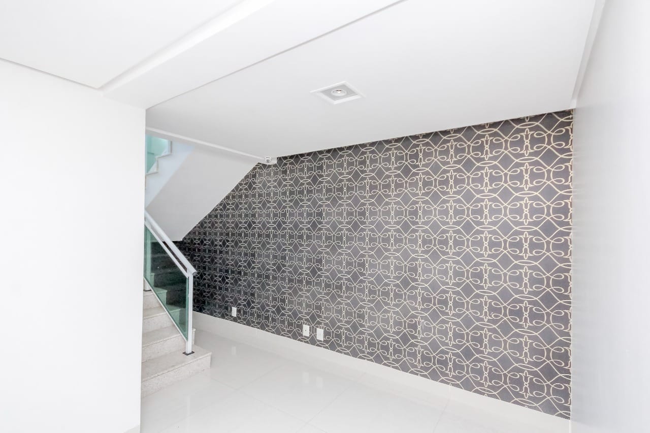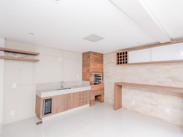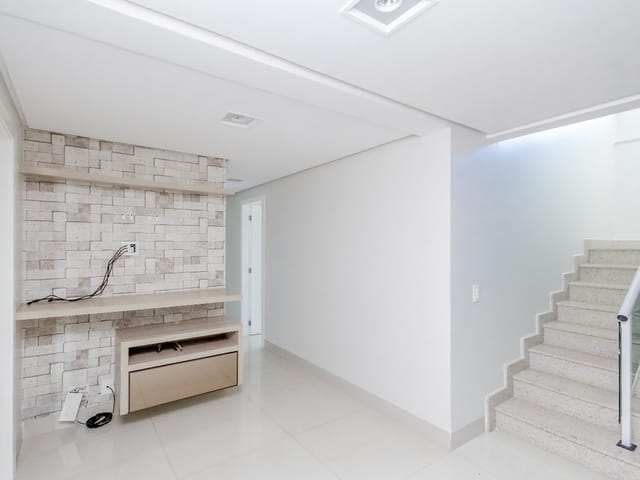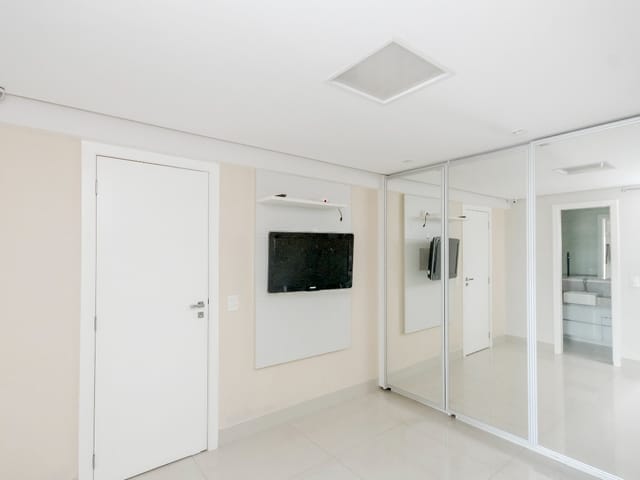 Imóvel possui sala de entrada com lavabo, acesso para o andar inferior por escada em granito direto para a sala de TV, onde se encontra 4 suítes plenas, sendo uma delas com escritório e outra com varanda. Todos os quartos e banheiros com armários de excelente qualidade, cozinha completa em armários, geladeira, cooktop e forno.