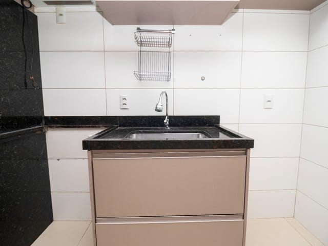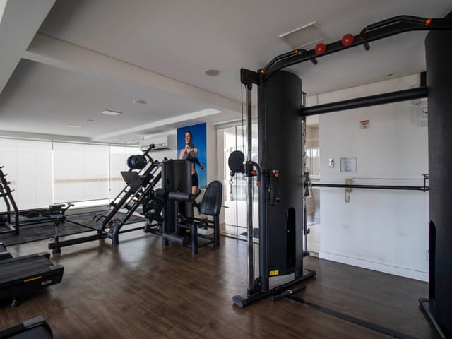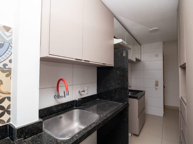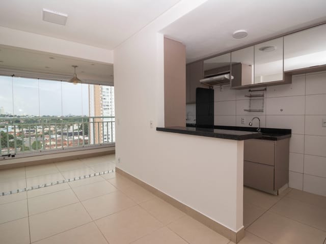 Imóvel possui 2 quartos, sendo 1 suíte com armário, sala, cozinha americana com armários , área de serviço com armários, banheiro social com armário, box e espelho, sacada e 1 vaga de garagem.