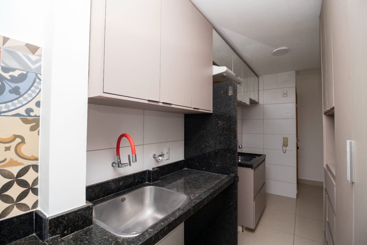Imóvel possui 2 quartos, sendo 1 suíte com armário, sala, cozinha americana com armários , área de serviço com armários, banheiro social com armário, box e espelho, sacada e 1 vaga de garagem.