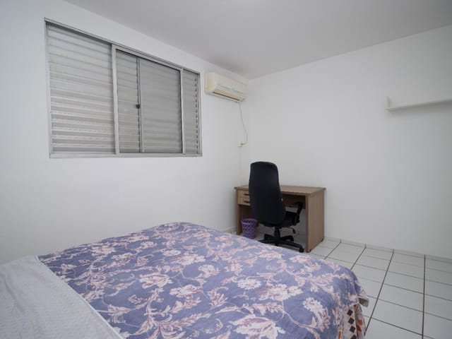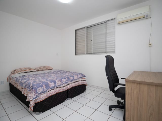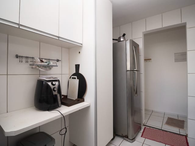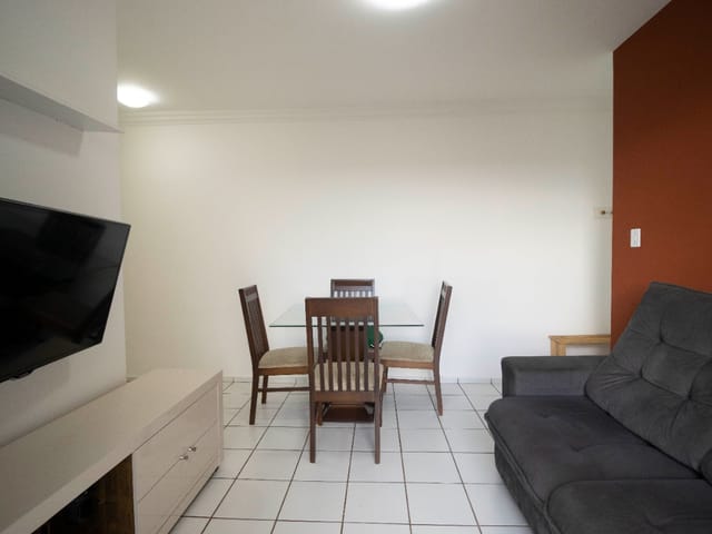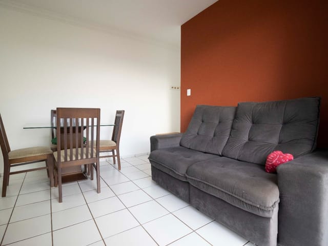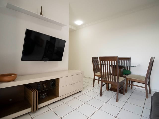 Excelente apartamento totalmente mobiliado, pronto para morar! Possui dois quartos, sendo um com armário planejado e ar-condicionado, ambos com cama. A sala integrada de estar e jantar conta com painel de TV, televisão, sofá confortável e mesa com quatro cadeiras. A cozinha é equipada com armários, geladeira, fogão, micro-ondas, forno elétrico, fritadeira elétrica e churrasqueira portátil. A área de serviço possui armários e máquina lava e seca. Inclui ainda uma vaga de garagem. Localização privilegiada no setor Goiânia 2, com fácil acesso a comércios e serviços.