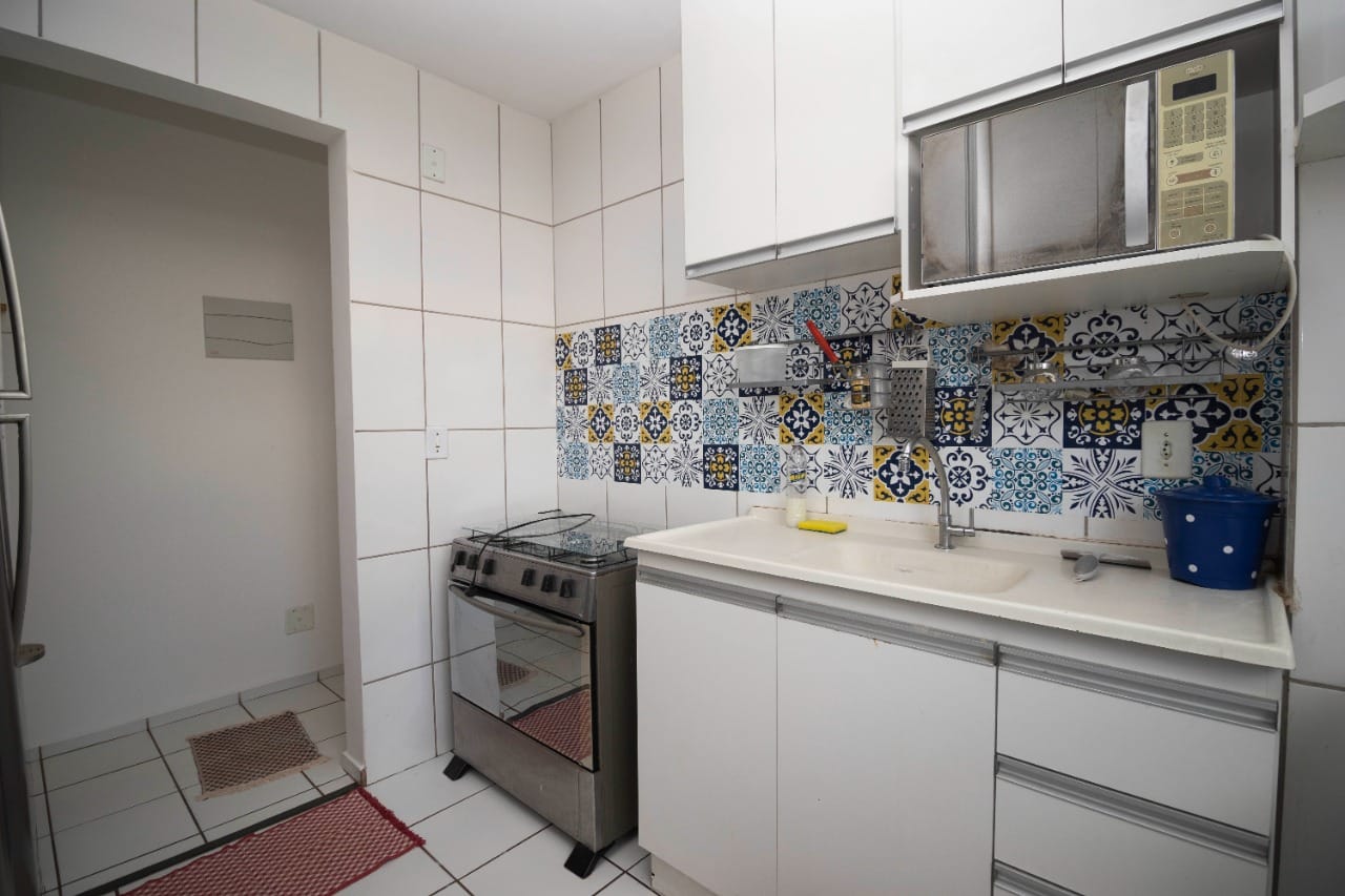 Excelente apartamento totalmente mobiliado, pronto para morar! Possui dois quartos, sendo um com armário planejado e ar-condicionado, ambos com cama. A sala integrada de estar e jantar conta com painel de TV, televisão, sofá confortável e mesa com quatro cadeiras. A cozinha é equipada com armários, geladeira, fogão, micro-ondas, forno elétrico, fritadeira elétrica e churrasqueira portátil. A área de serviço possui armários e máquina lava e seca. Inclui ainda uma vaga de garagem. Localização privilegiada no setor Goiânia 2, com fácil acesso a comércios e serviços.