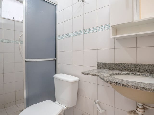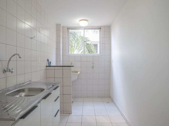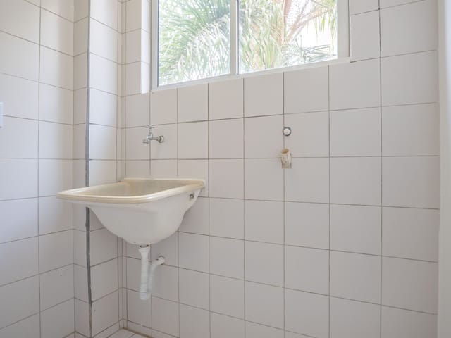 Cozinha integrada com área de serviço, 2 quartos, 1 banheiro social, 1 vaga de garagem descoberta, Condomínio oferece: Quadra poliesportiva, Área gourmet com churrasqueira, Localização prática e estrutura completa para sua rotina.