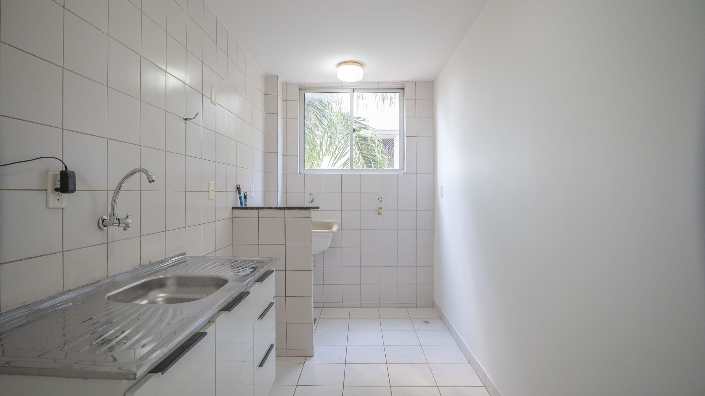 Cozinha integrada com área de serviço, 2 quartos, 1 banheiro social, 1 vaga de garagem descoberta, Condomínio oferece: Quadra poliesportiva, Área gourmet com churrasqueira, Localização prática e estrutura completa para sua rotina.