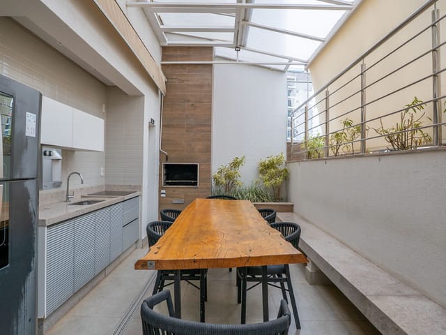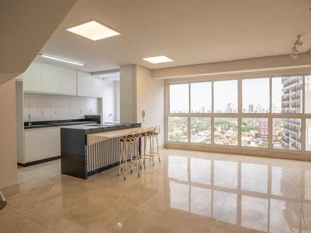 Encantador apartamento duplex com 2 quartos, ambos suítes, além de 1 lavabo no pavimento social. O imóvel conta com ar-condicionado nos dois quartos, armários planejados em todos os ambientes incluindo cozinha, banheiros e dormitórios e acabamento de alto padrão, com iluminação projetada e moderna.