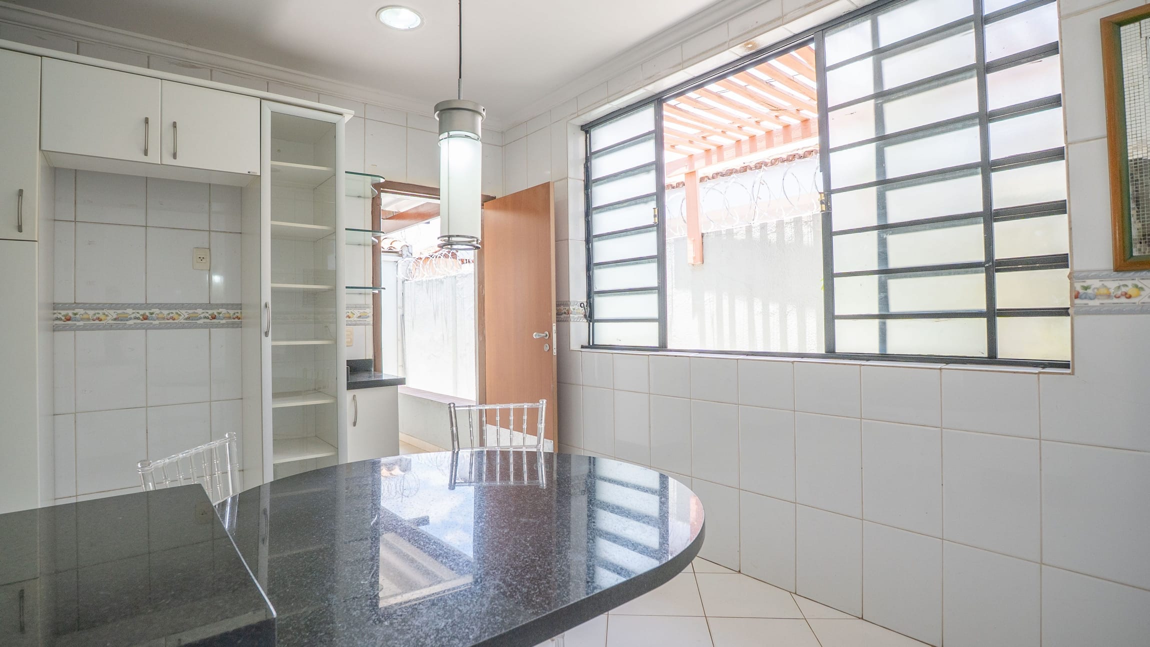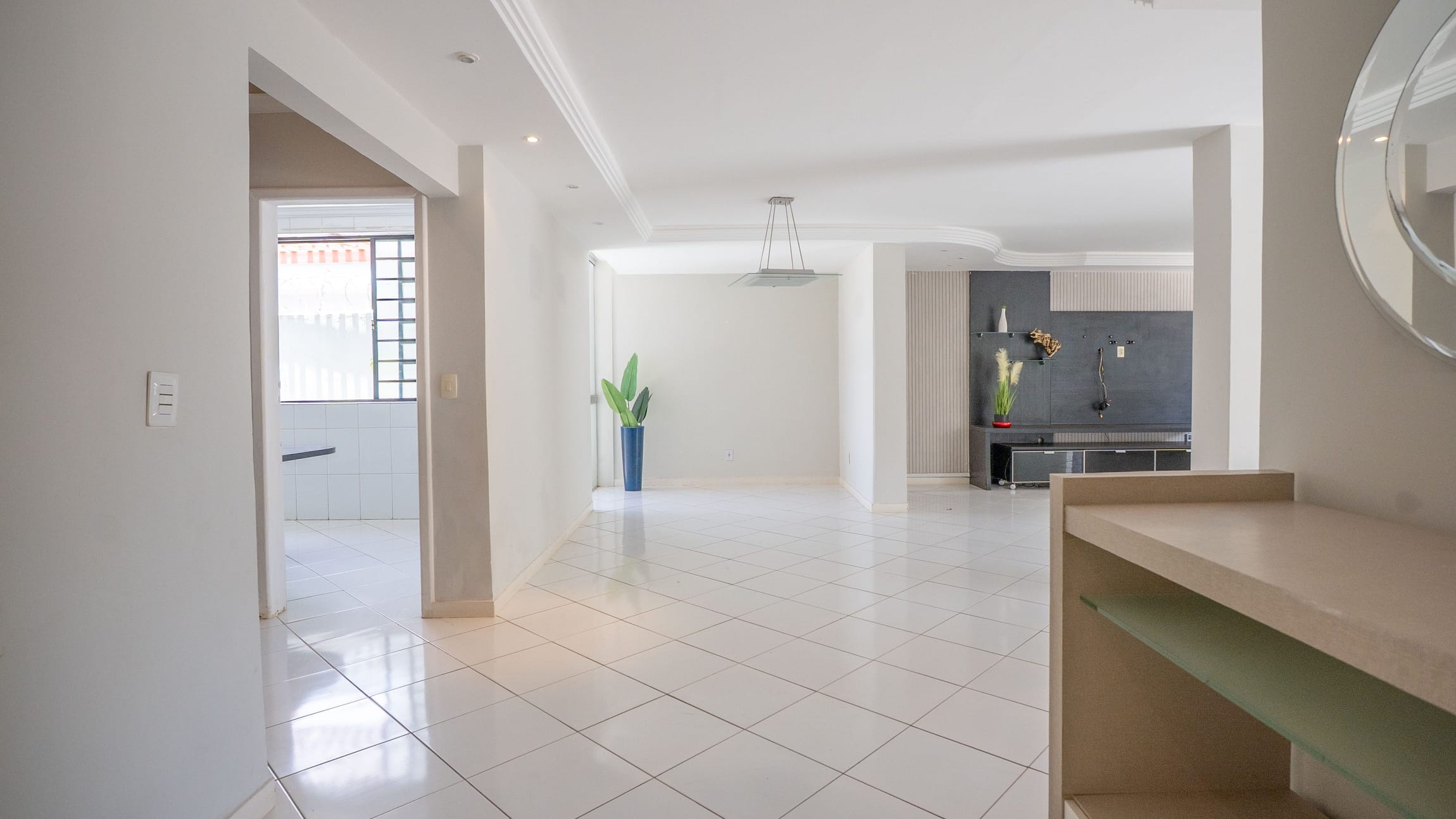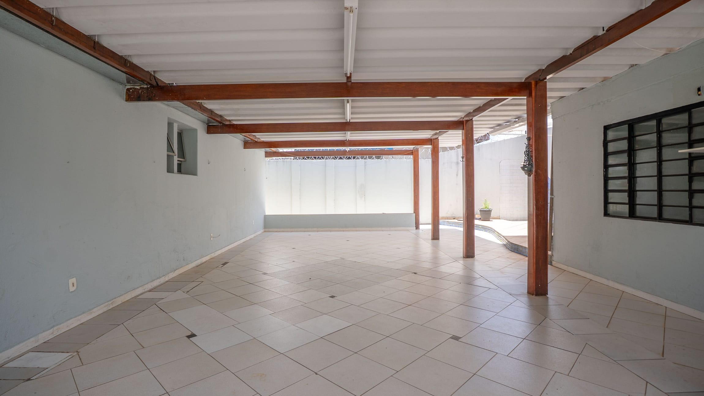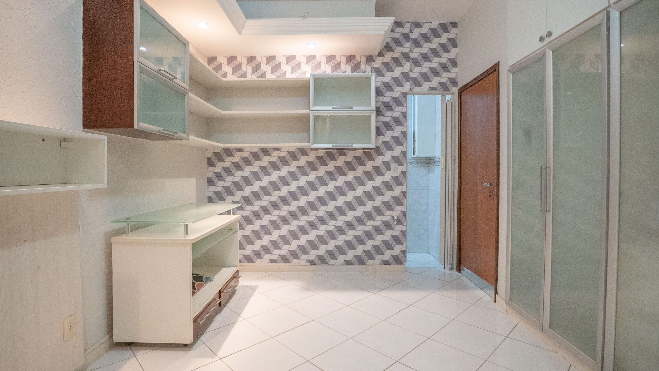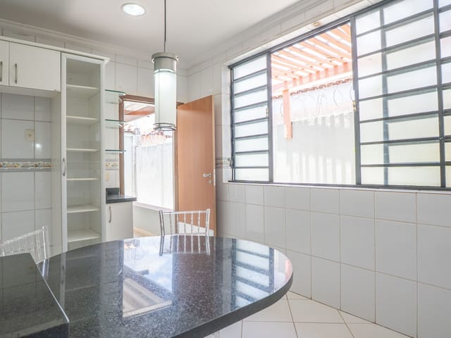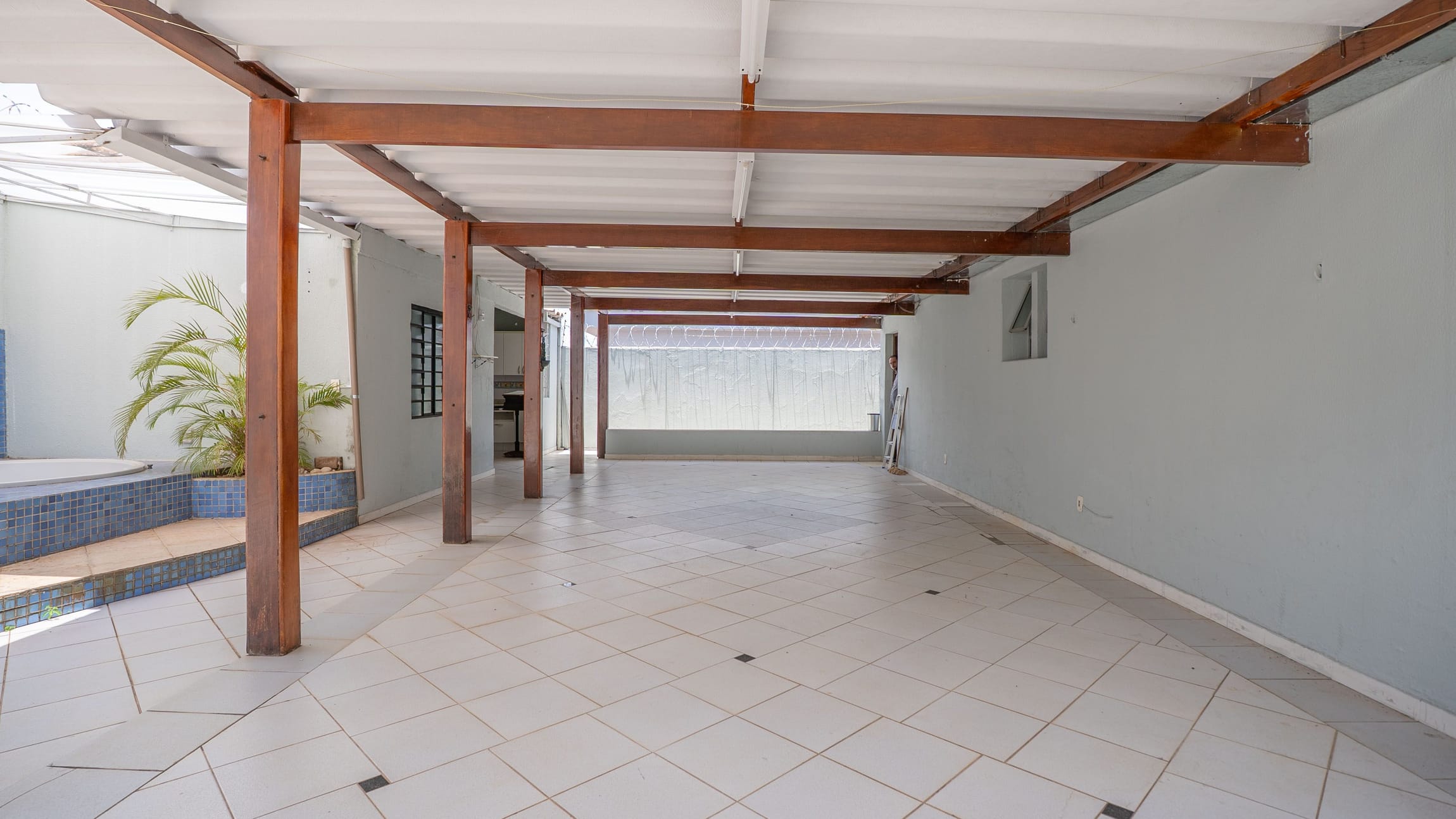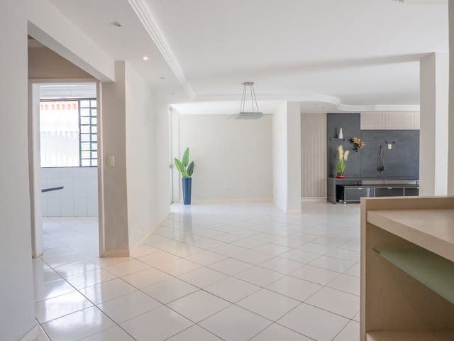 Casa térrea 3 quartos suítes com armários e ar-condicionado, banheiro social, sala de estar, sala de TV, cozinha com armários, área gourmet, área de serviço, quarto e banheiro no fundo. Tudo isso com direito a garagem para 4 carros.