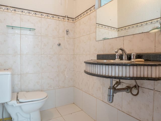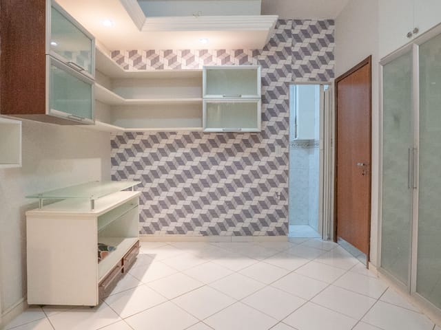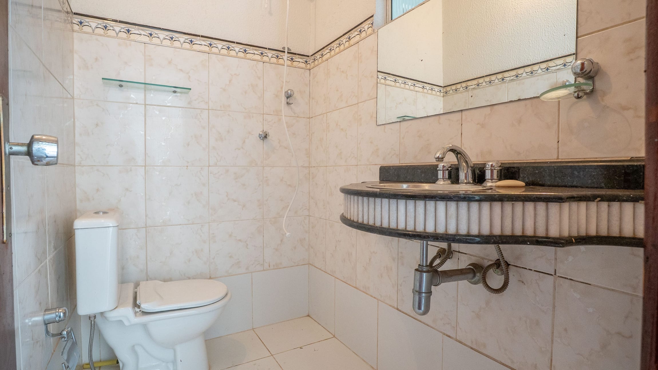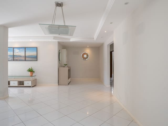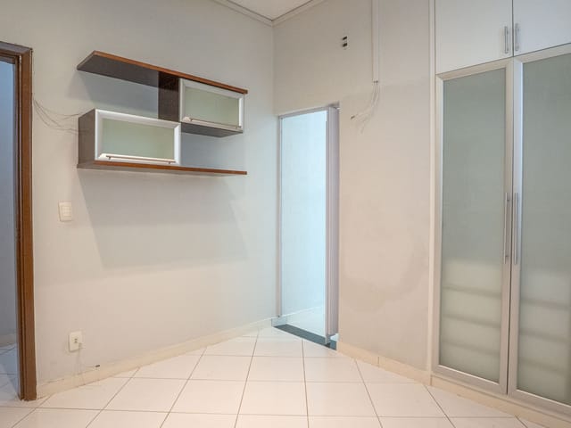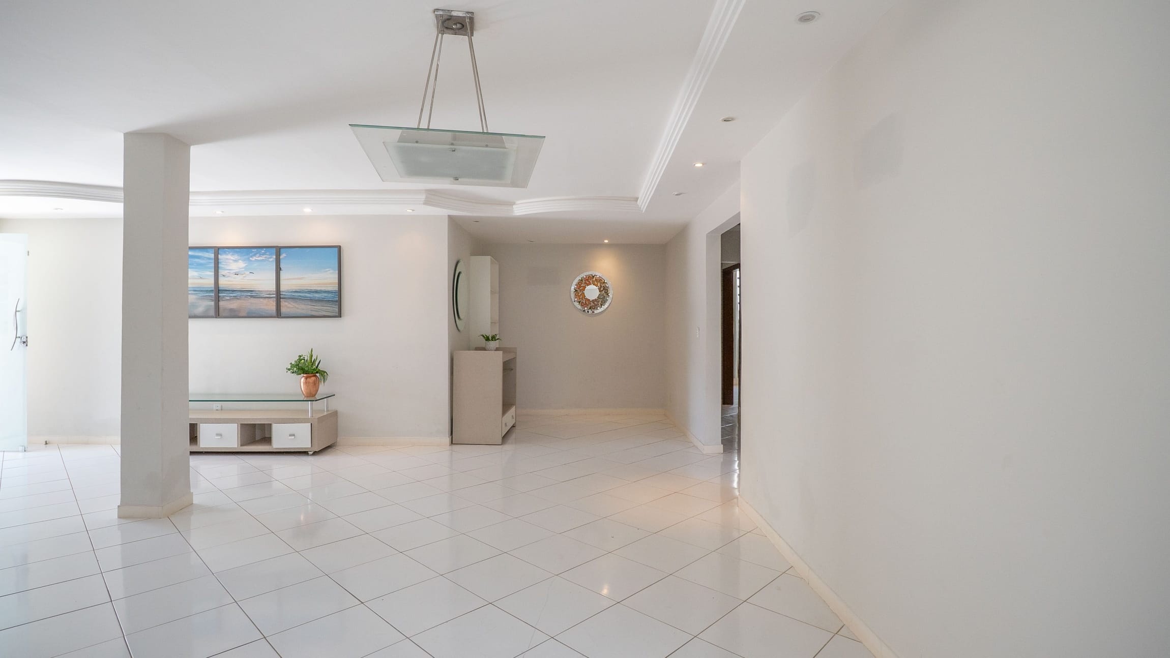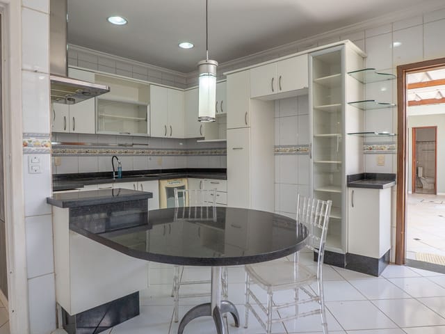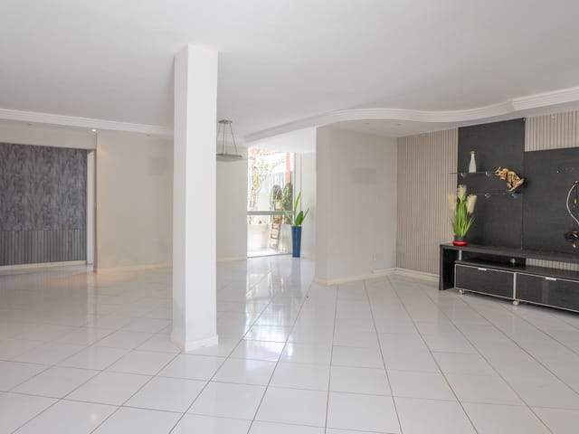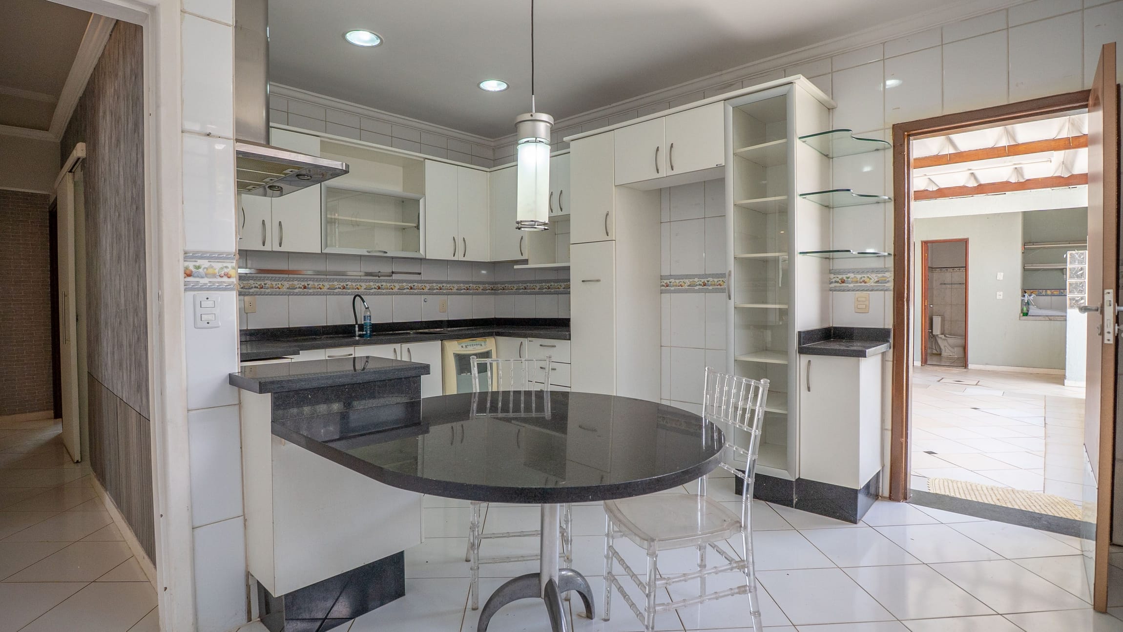 Casa térrea 3 quartos suítes com armários e ar-condicionado, banheiro social, sala de estar, sala de TV, cozinha com armários, área gourmet, área de serviço, quarto e banheiro no fundo. Tudo isso com direito a garagem para 4 carros.