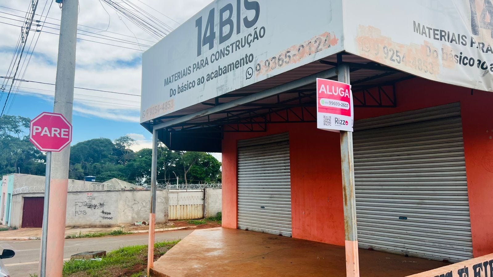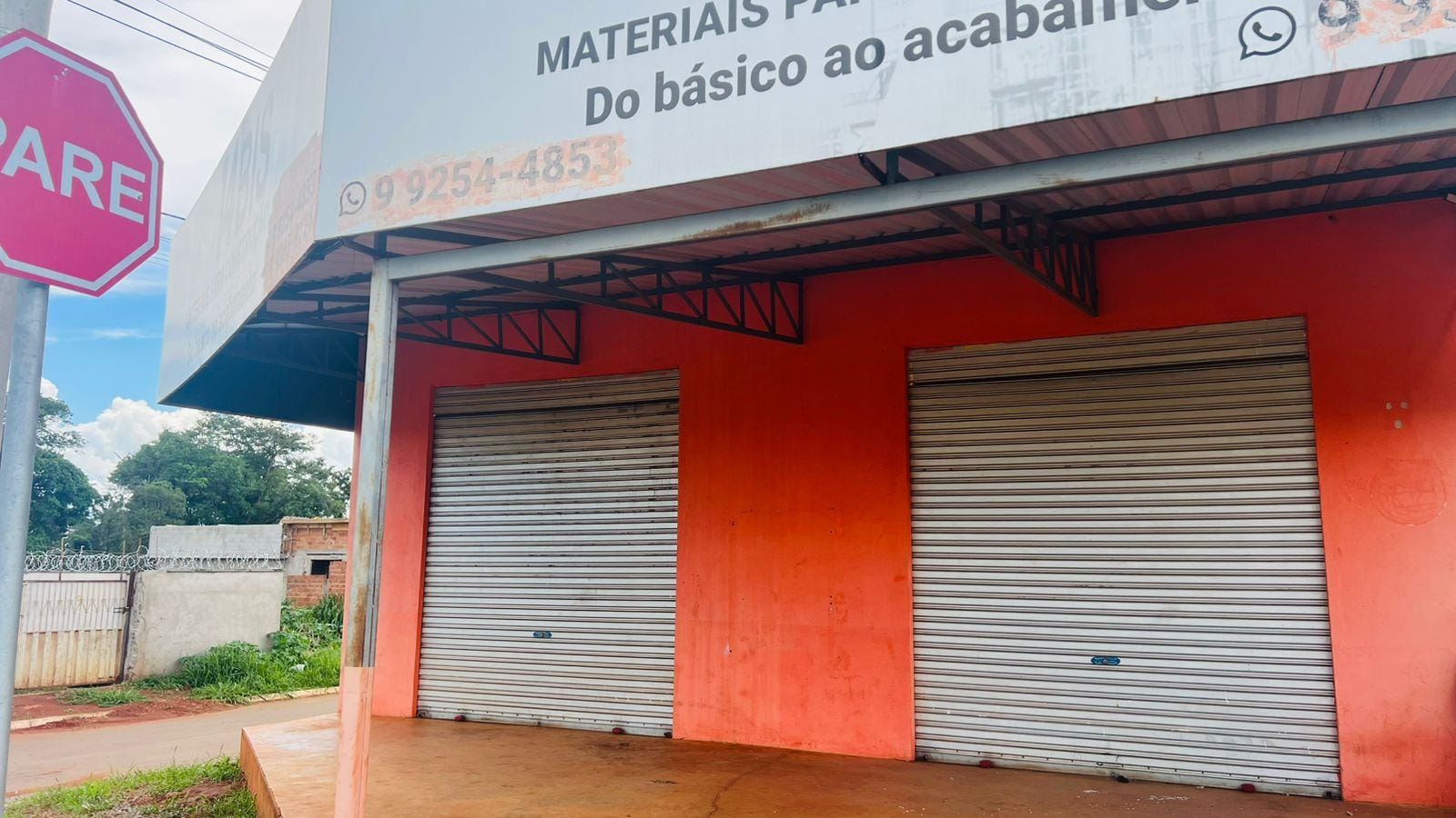 Sala para locação com banheiro e depoisito. De esquina com área na frente.