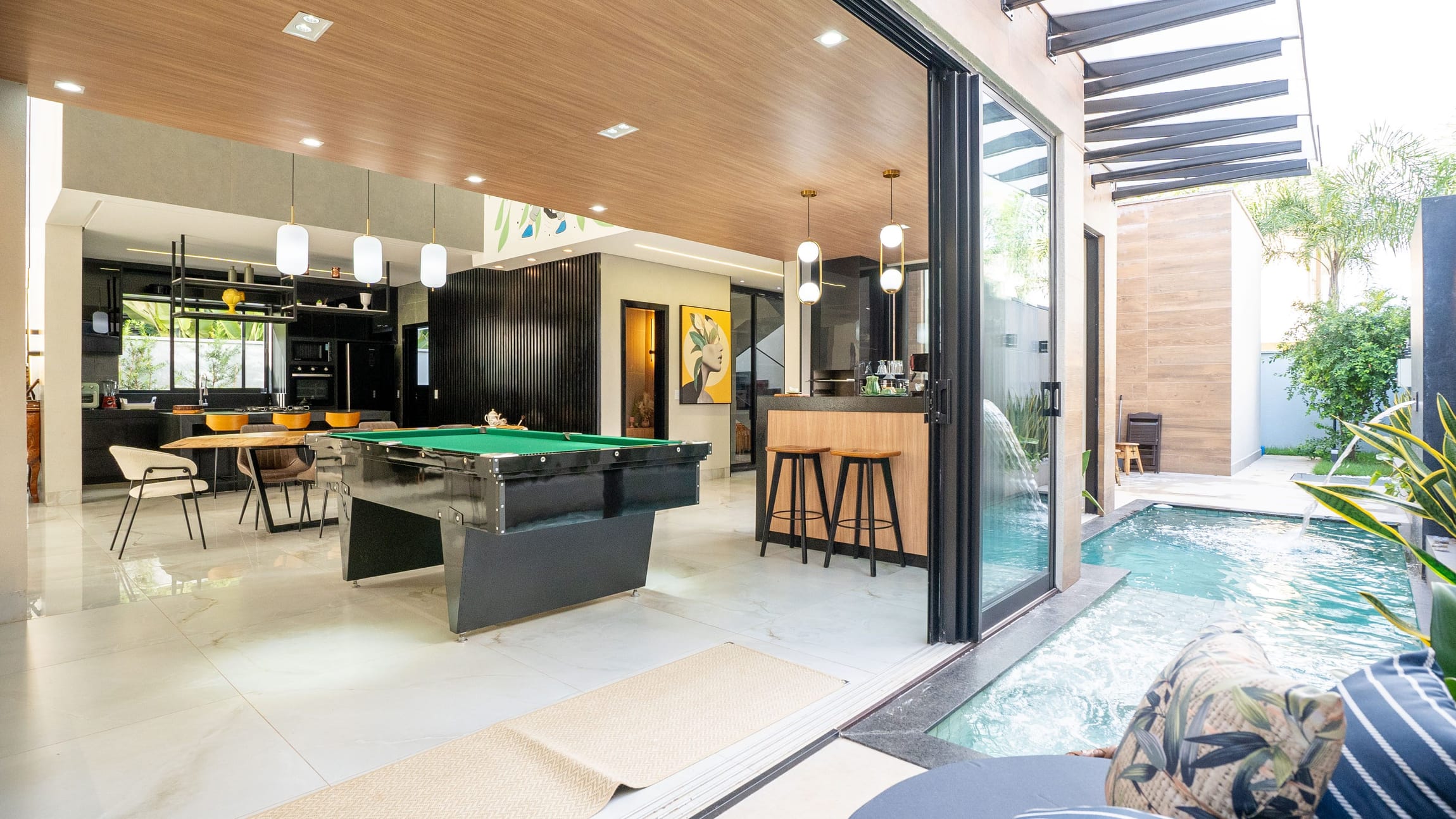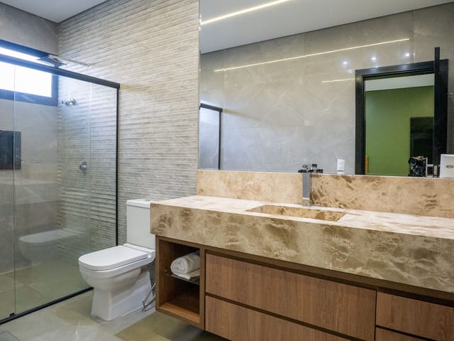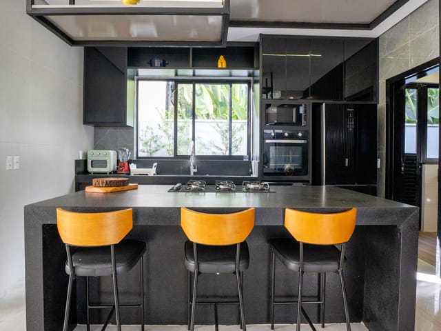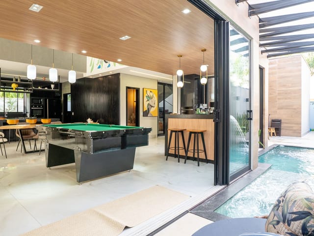 Casa Mobiliada e Decorada com 4 suítes, sendo 3 suítes no térreo e 1 suíte completa no piso superior, sala 3 ambientes, cozinha, lavanderia, banheiros, piscina aquecida, closet na suíte master.