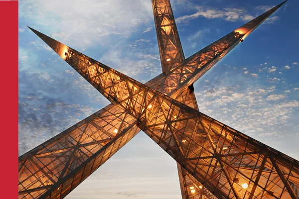 Além da inegável beleza e imponência, o monumento, que tem 45 metros de comprimento total, foi construído numa estrutura tubular de aço revestida com chapas metálicas perfuradas. Essa arquitetura permite a passagem da luz do dia e a noite a iluminação interna de seus 12 refletores.