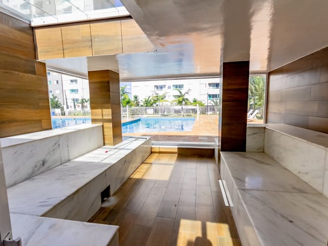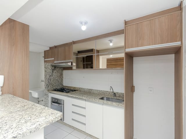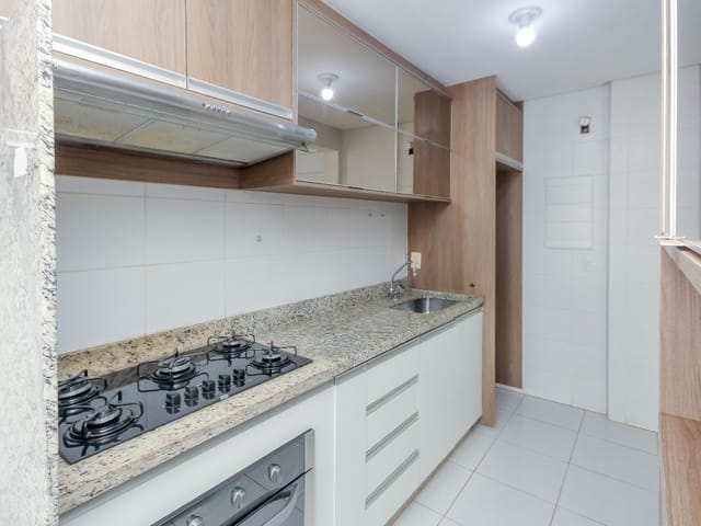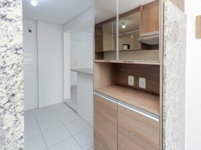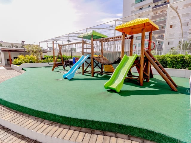 Apartamento possui 3 quartos sendo 1 suíte individual e 2 americanas, sala com painel de tv, cozinha com armários, cooktop, forno embutido, lavabo, área de serviço e 1 vaga de garagem.