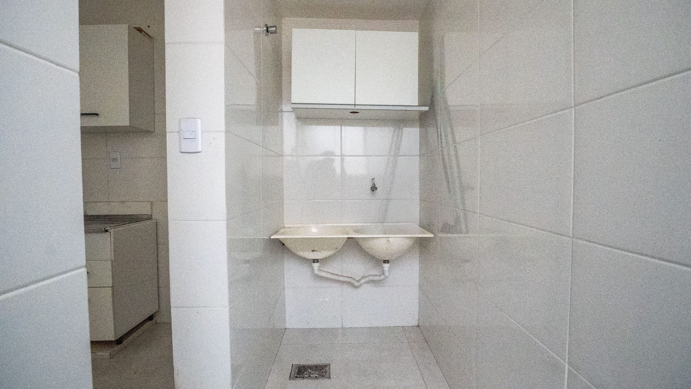 Imóvel possui 2 quartos com armário e 1 com ar condicionado, sala, cozinha com cooktoop e armários, Área de serviço com armários(, banheiro social com box e armário e 1 vaga de garagem.