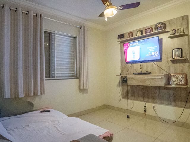 3 Quartos sendo uma suíte e dois banheiros sociais