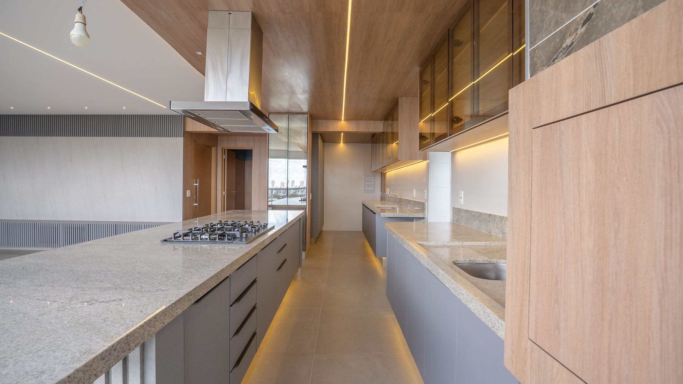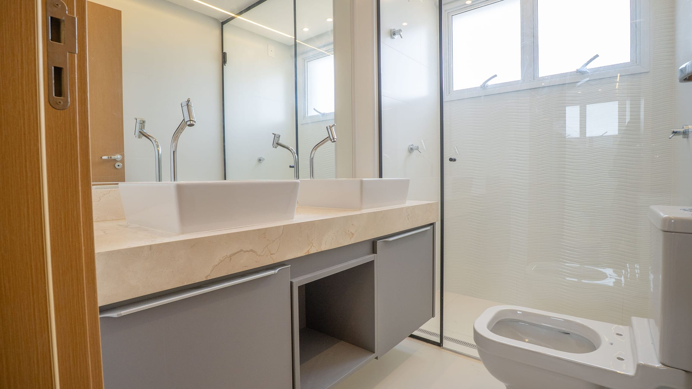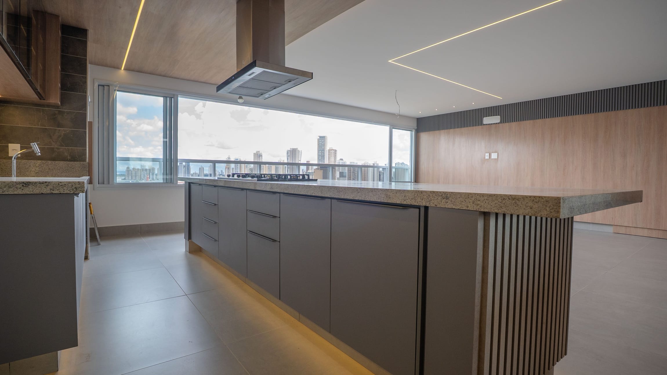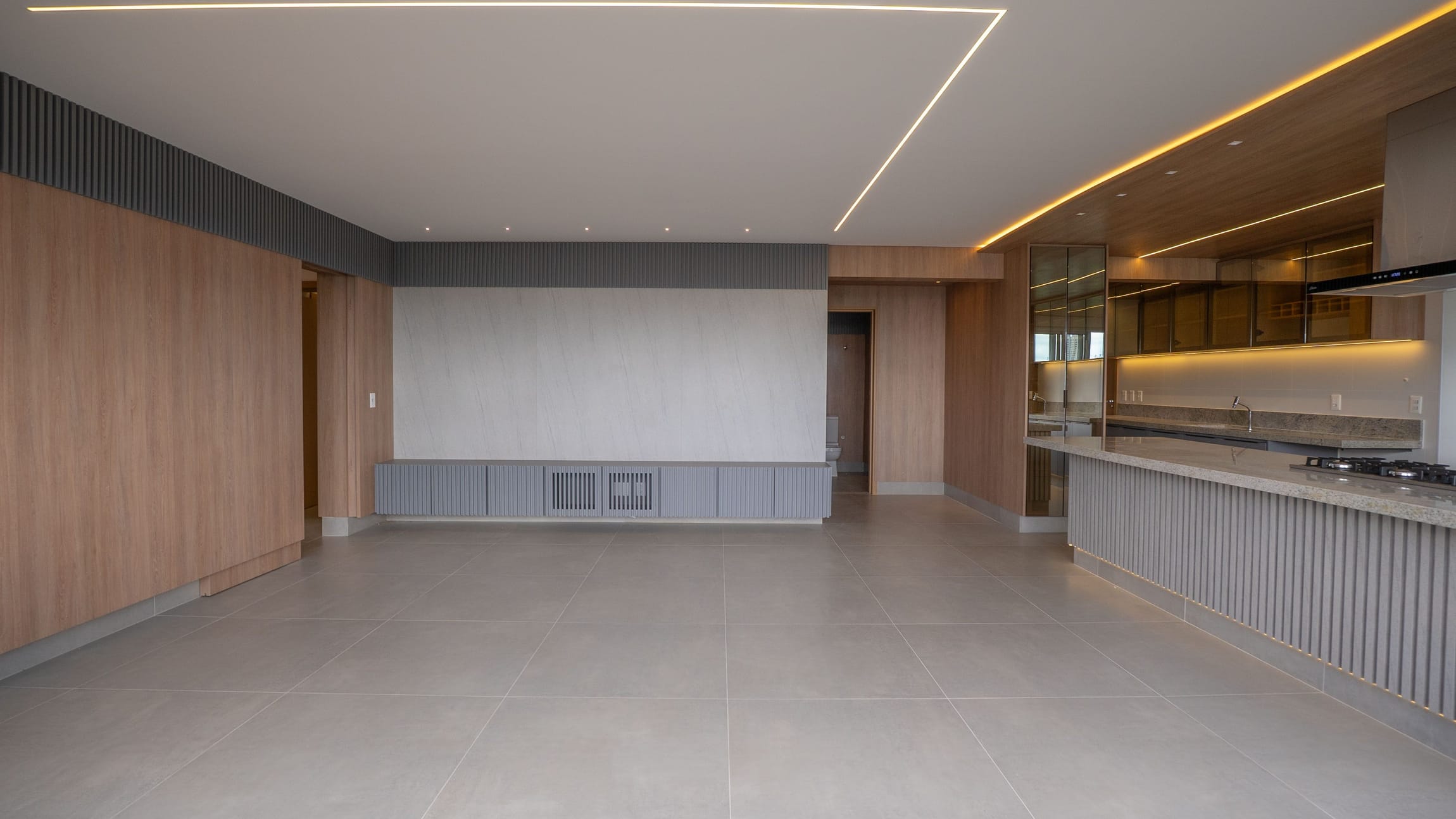São 3 suítes plenas, garantindo privacidade e conforto para toda a família. A marcenaria de alto padrão valoriza cada ambiente, enquanto o imóvel totalmente climatizado entrega comodidade desde o primeiro dia.