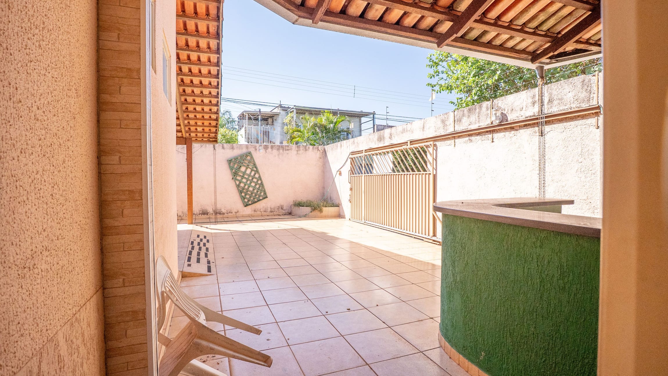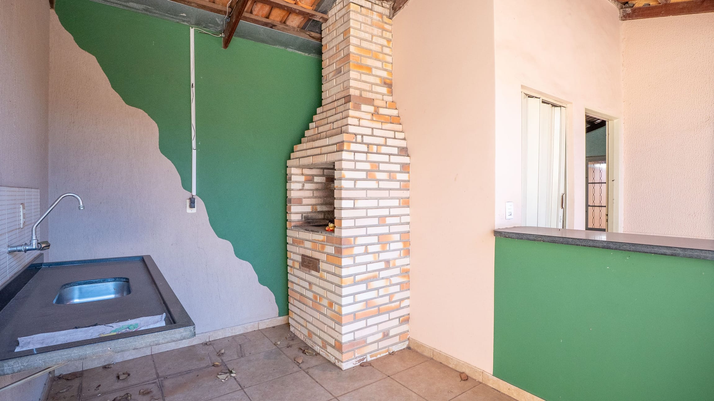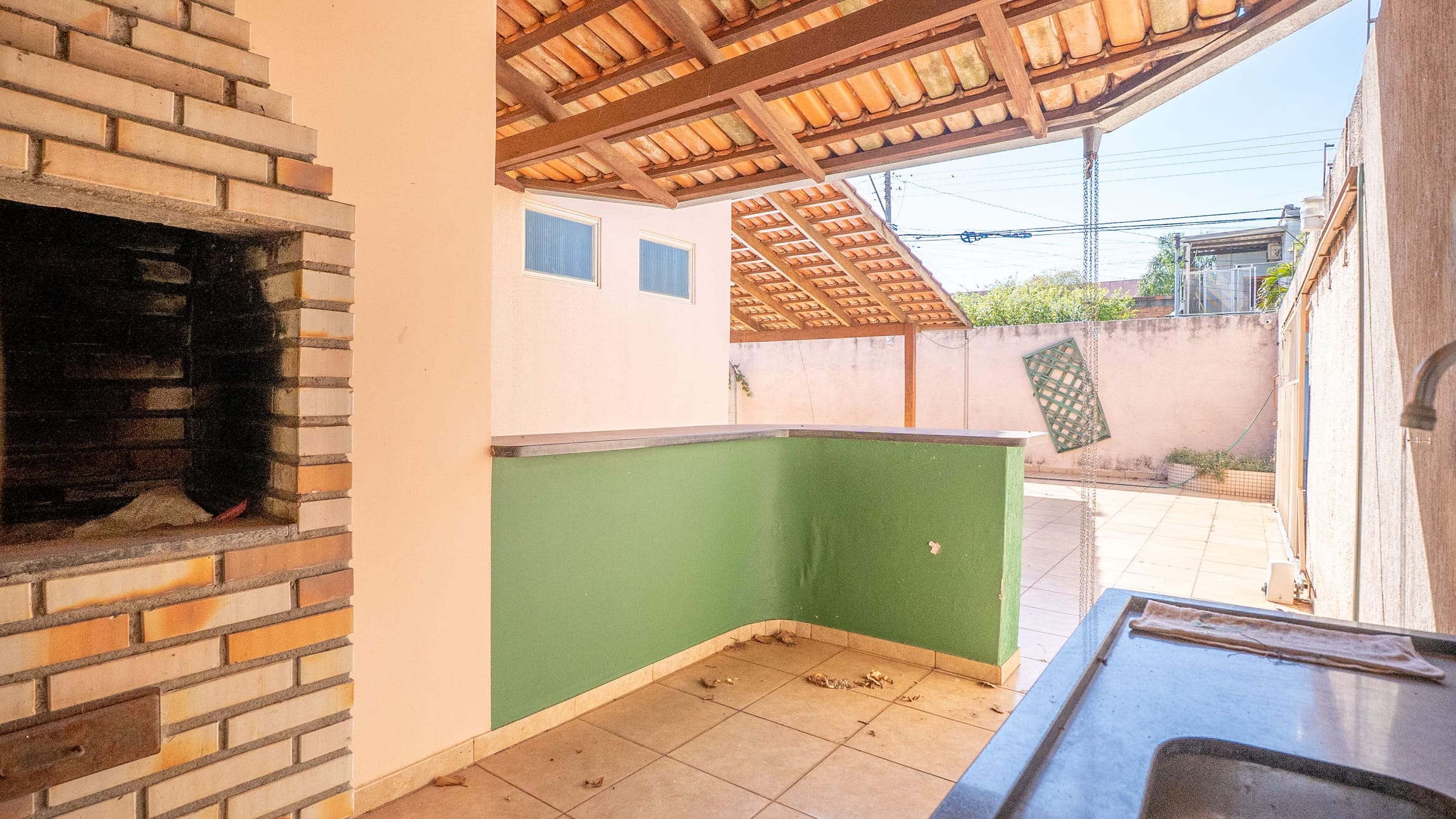 Espaço gourmet com churrasqueira a carvão, ideal para momentos de lazer