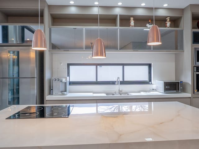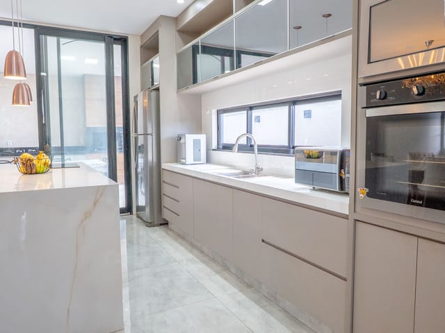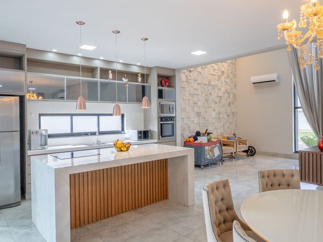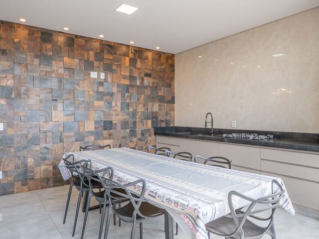 Cozinha integrada ao espaço gourmet, perfeita para receber amigos e familiares