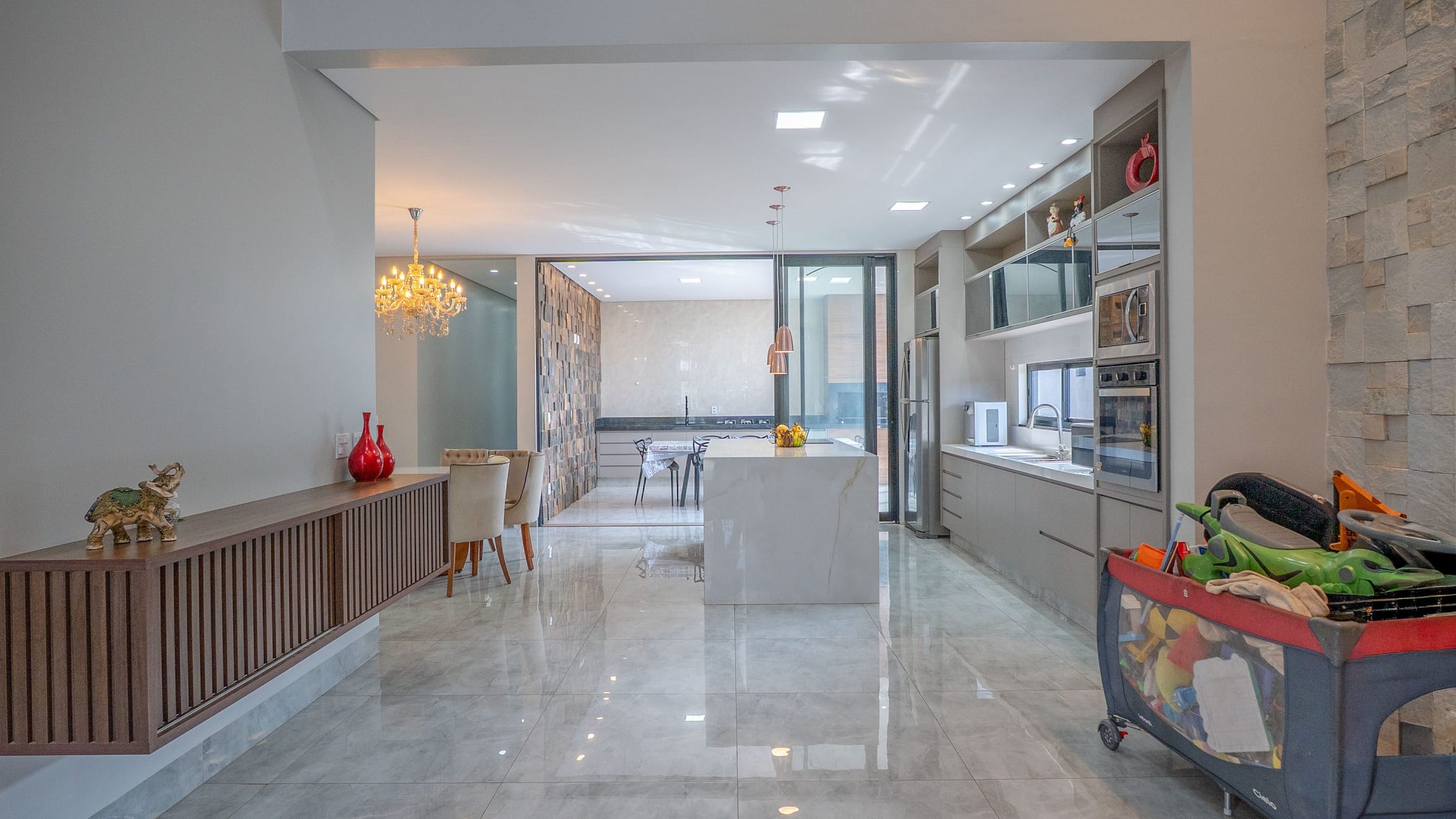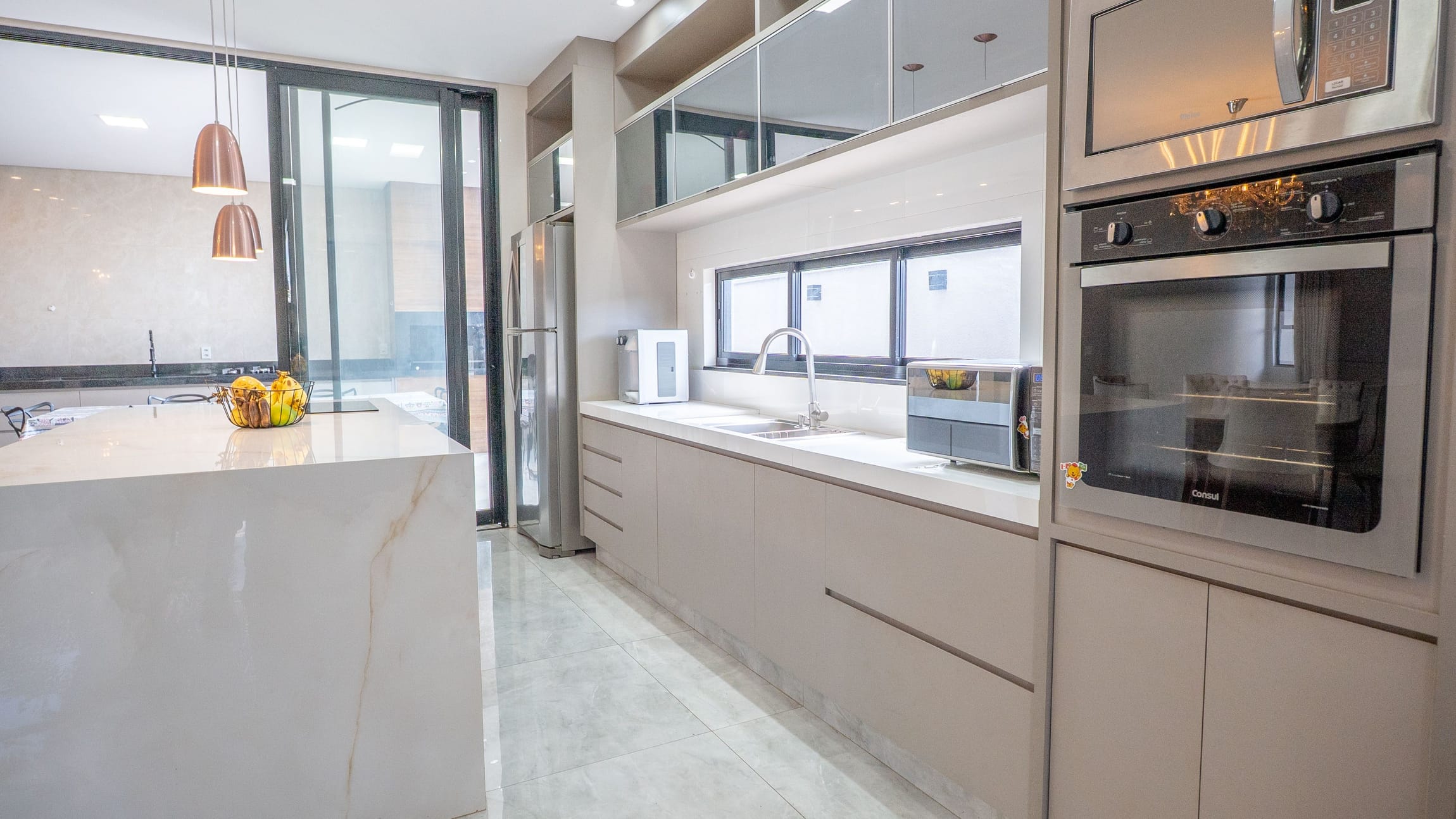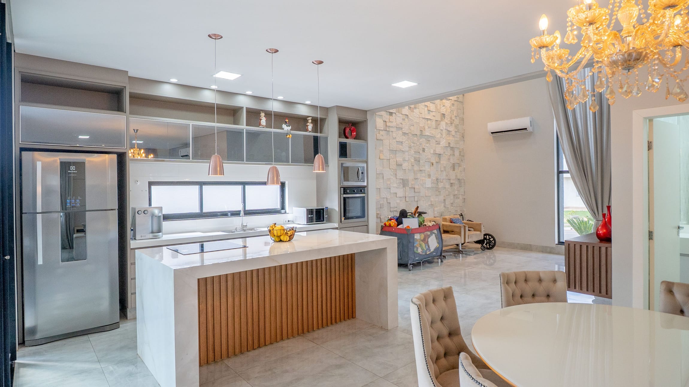 Cozinha integrada ao espaço gourmet, perfeita para receber amigos e familiares