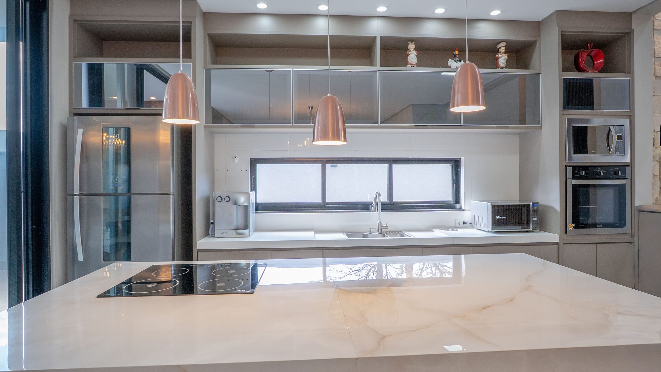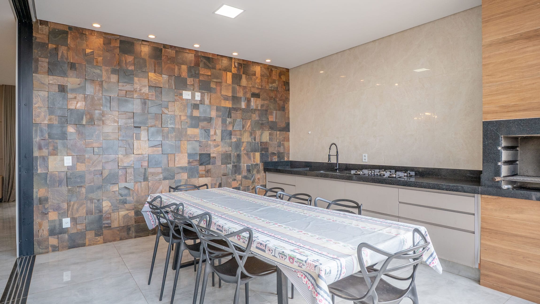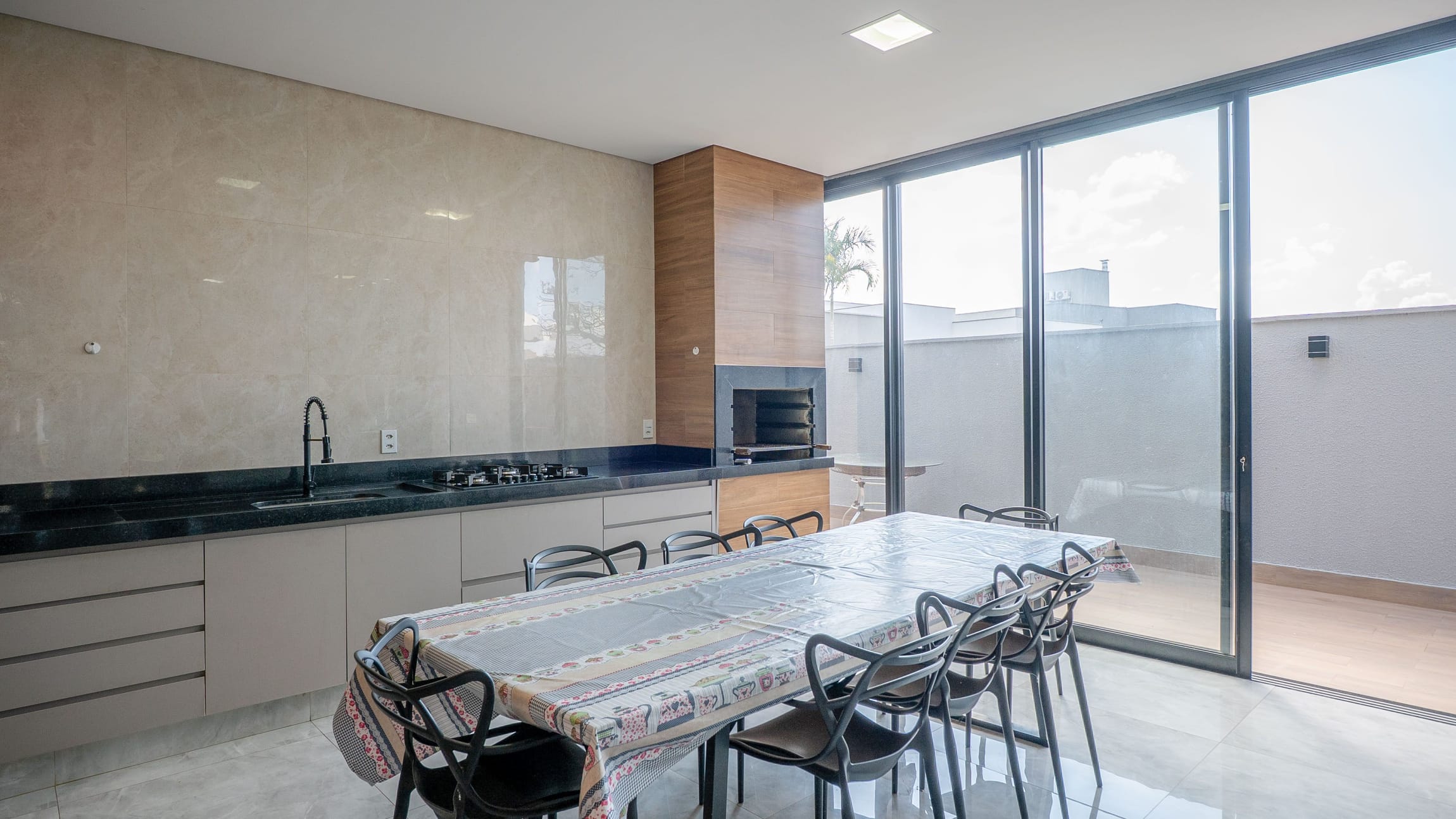 Cozinha integrada ao espaço gourmet, perfeita para receber amigos e familiares