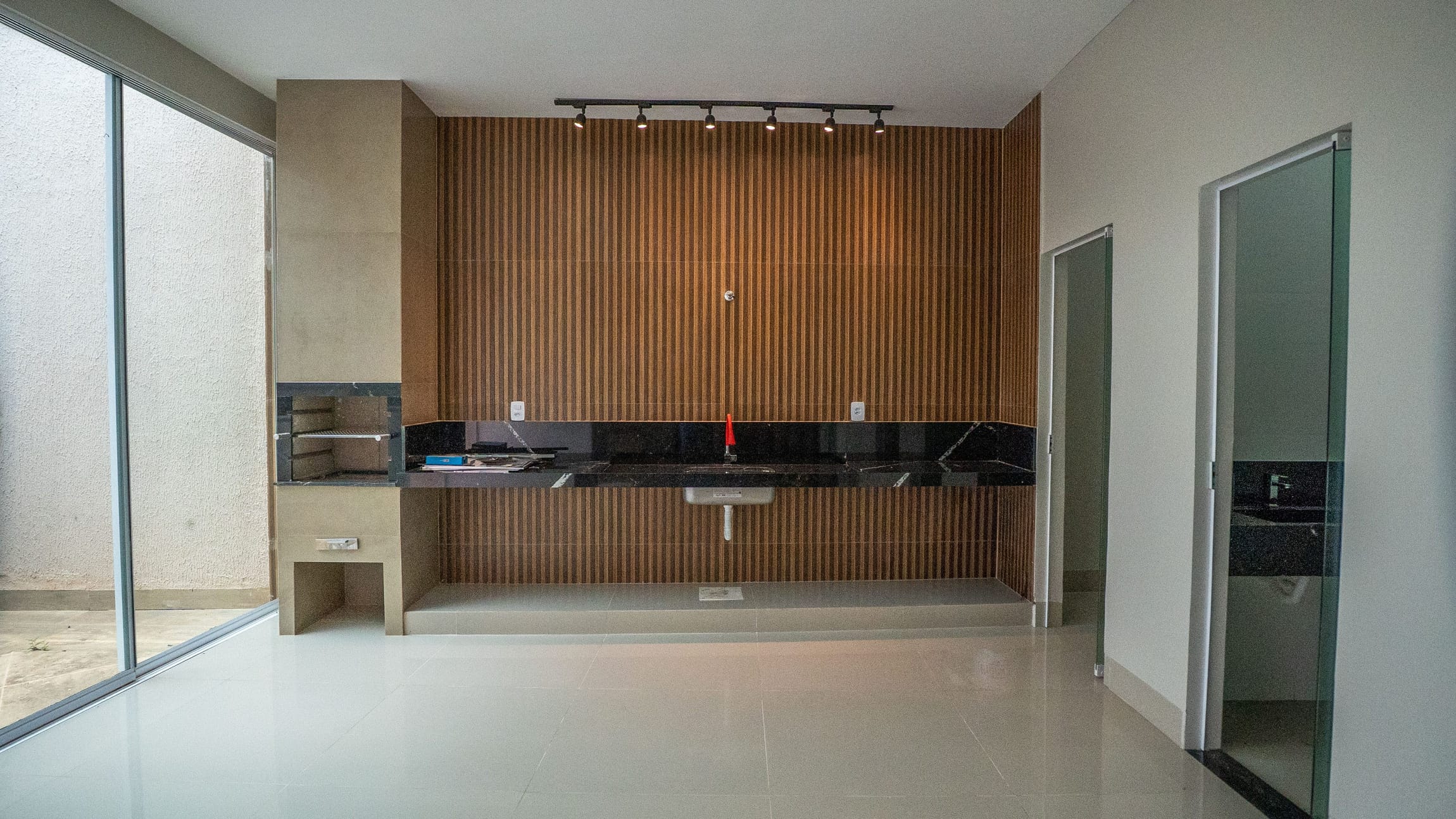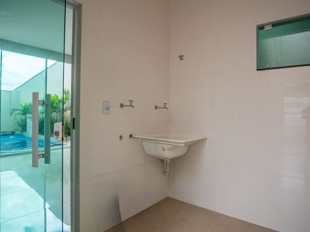 Garagem, sala de TV, cozinha, Área de serviço, Área Gourmet.