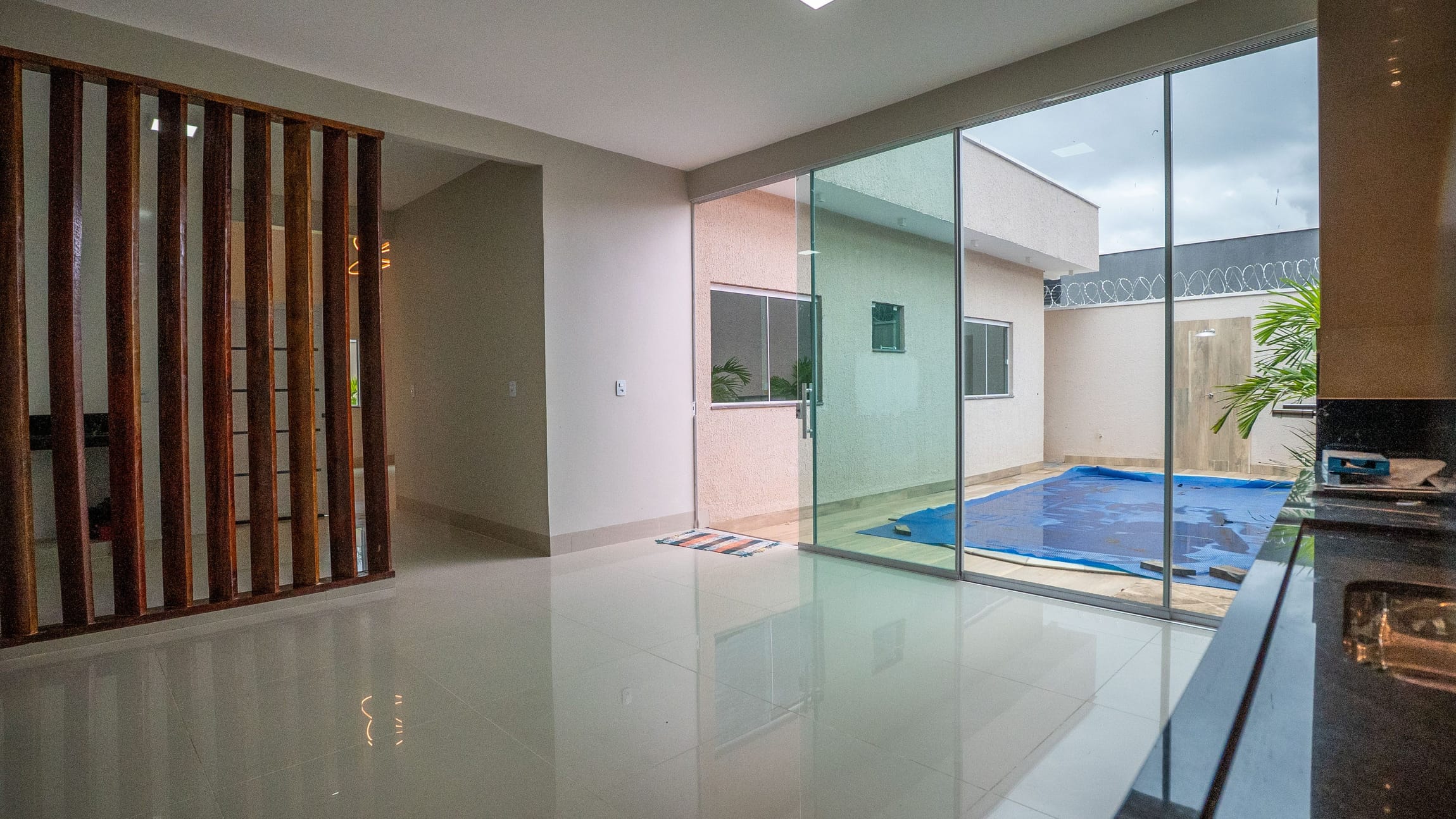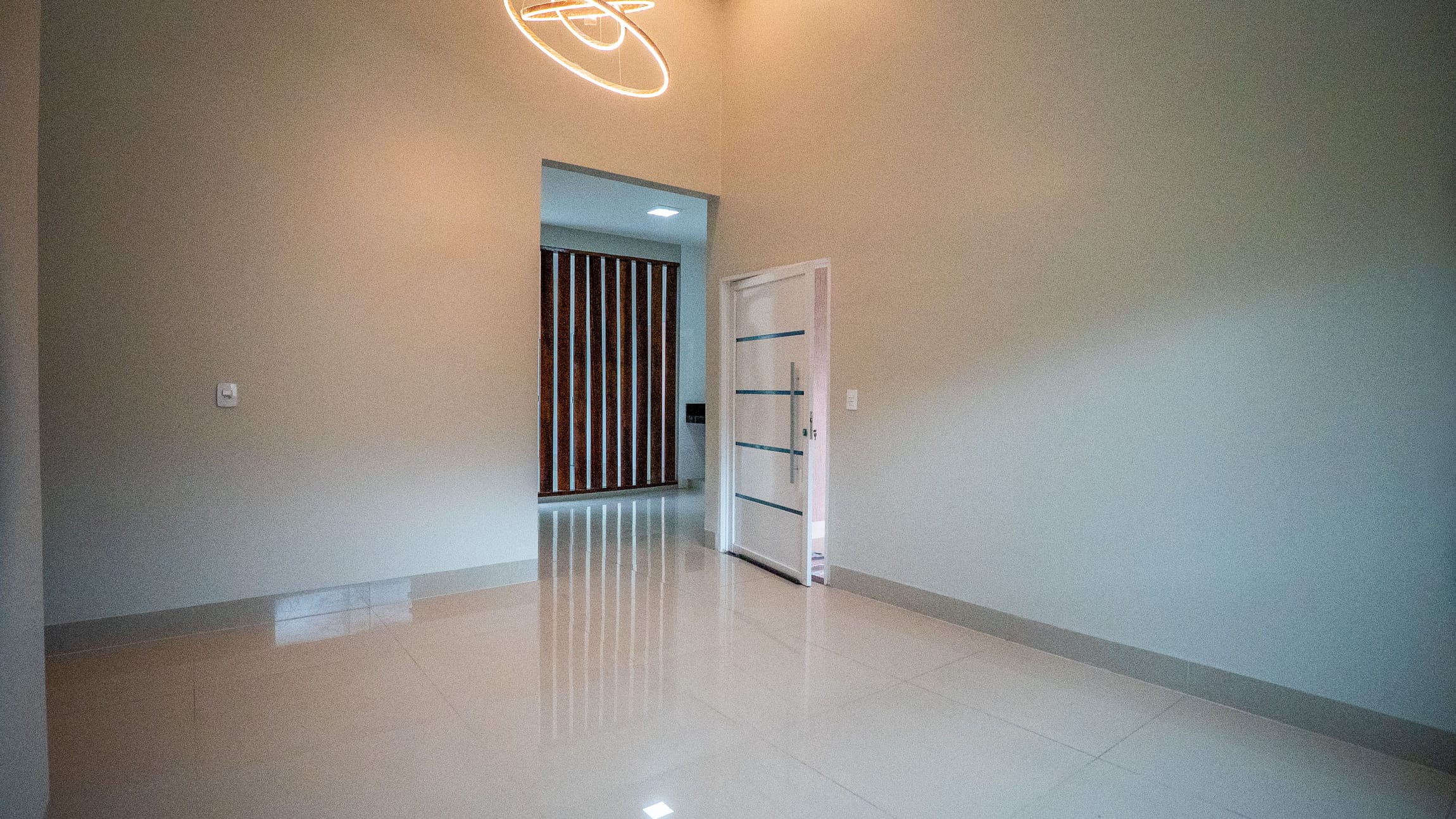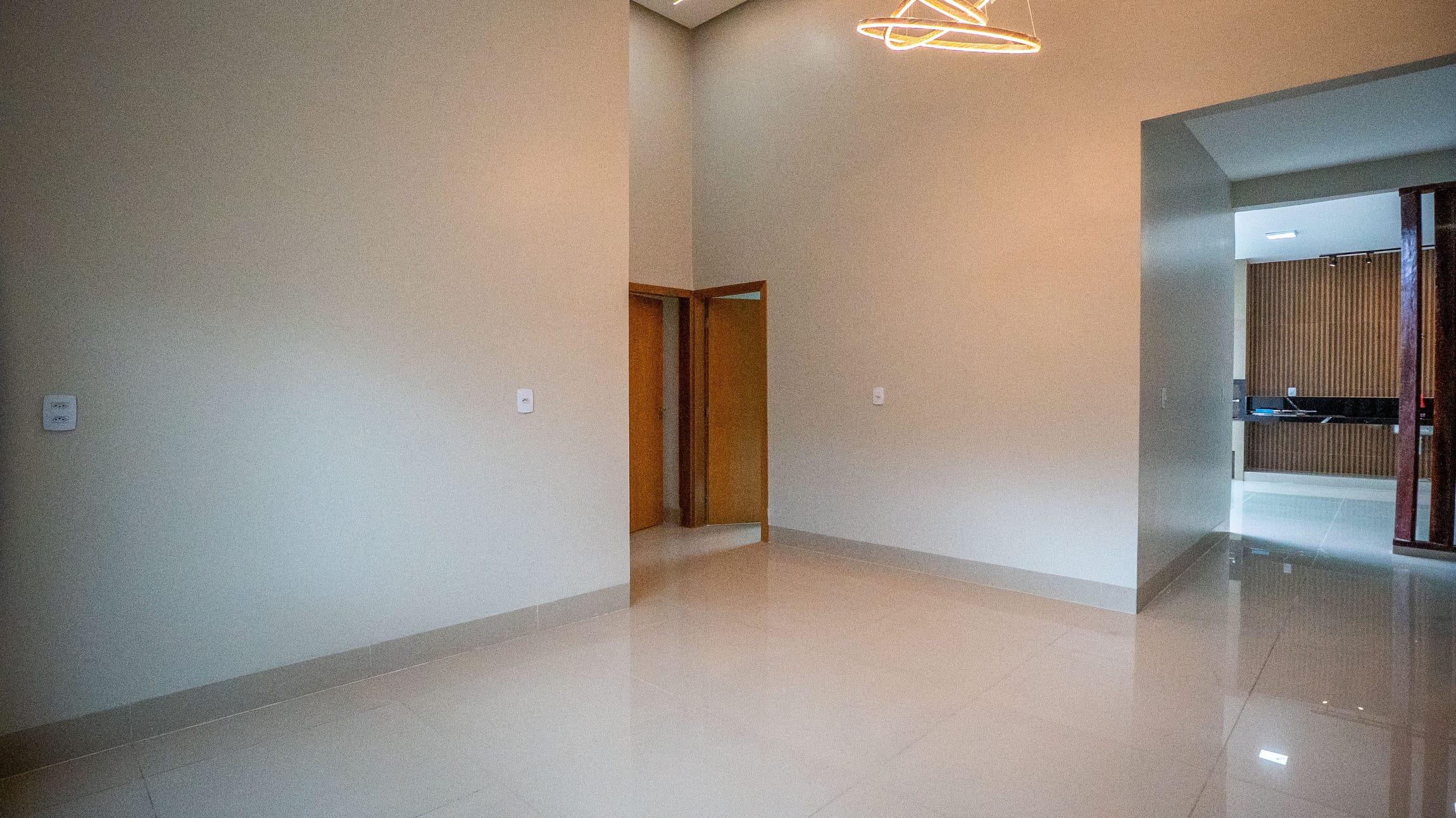 Pé direito alto na sala de TV. Com altura De 4.80 m