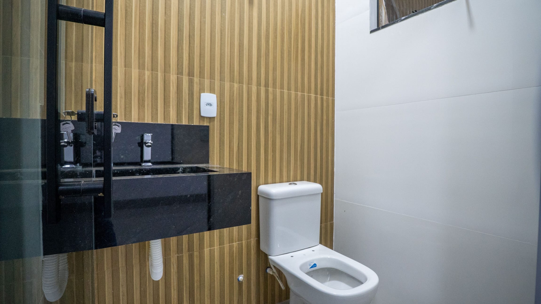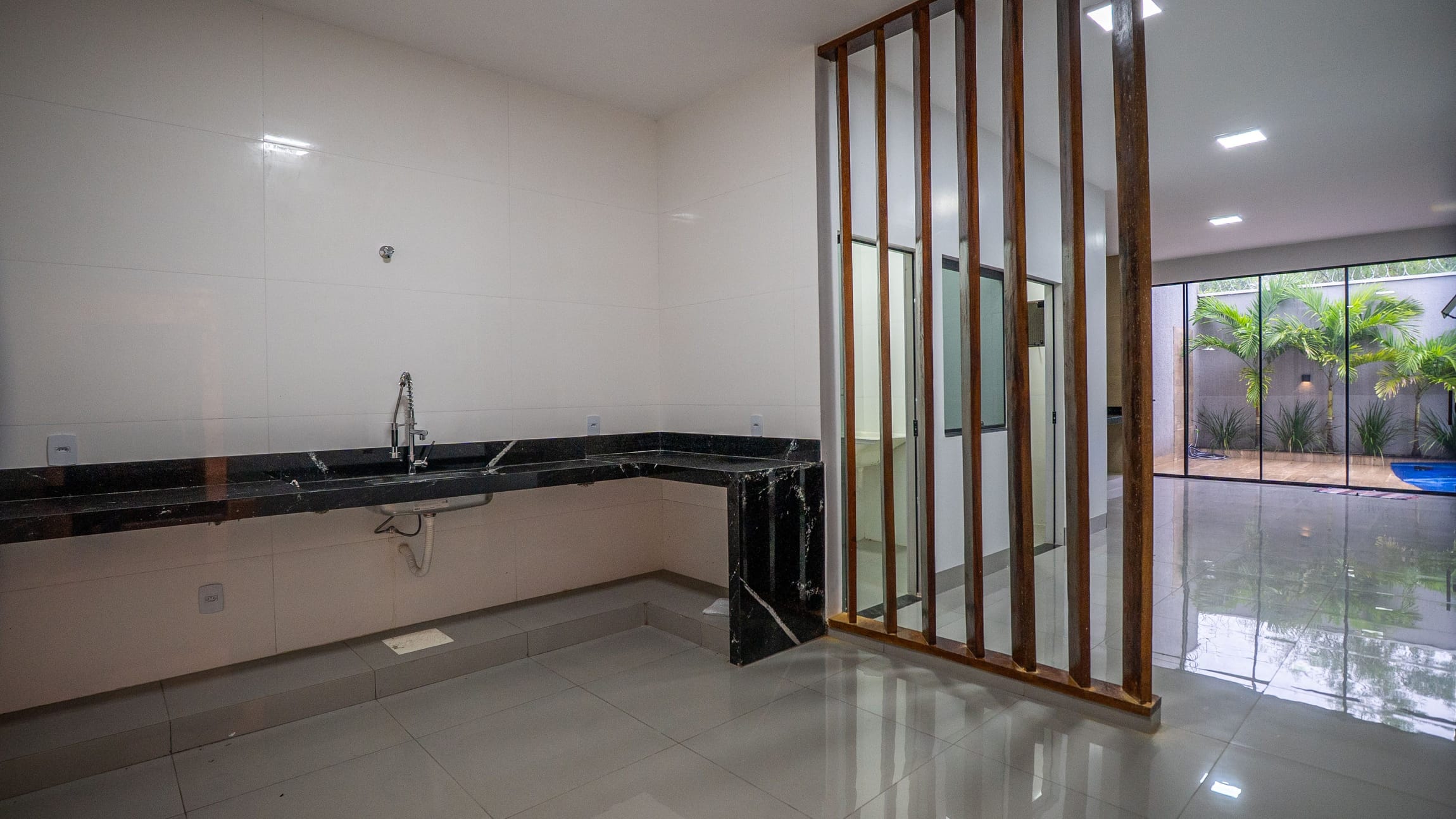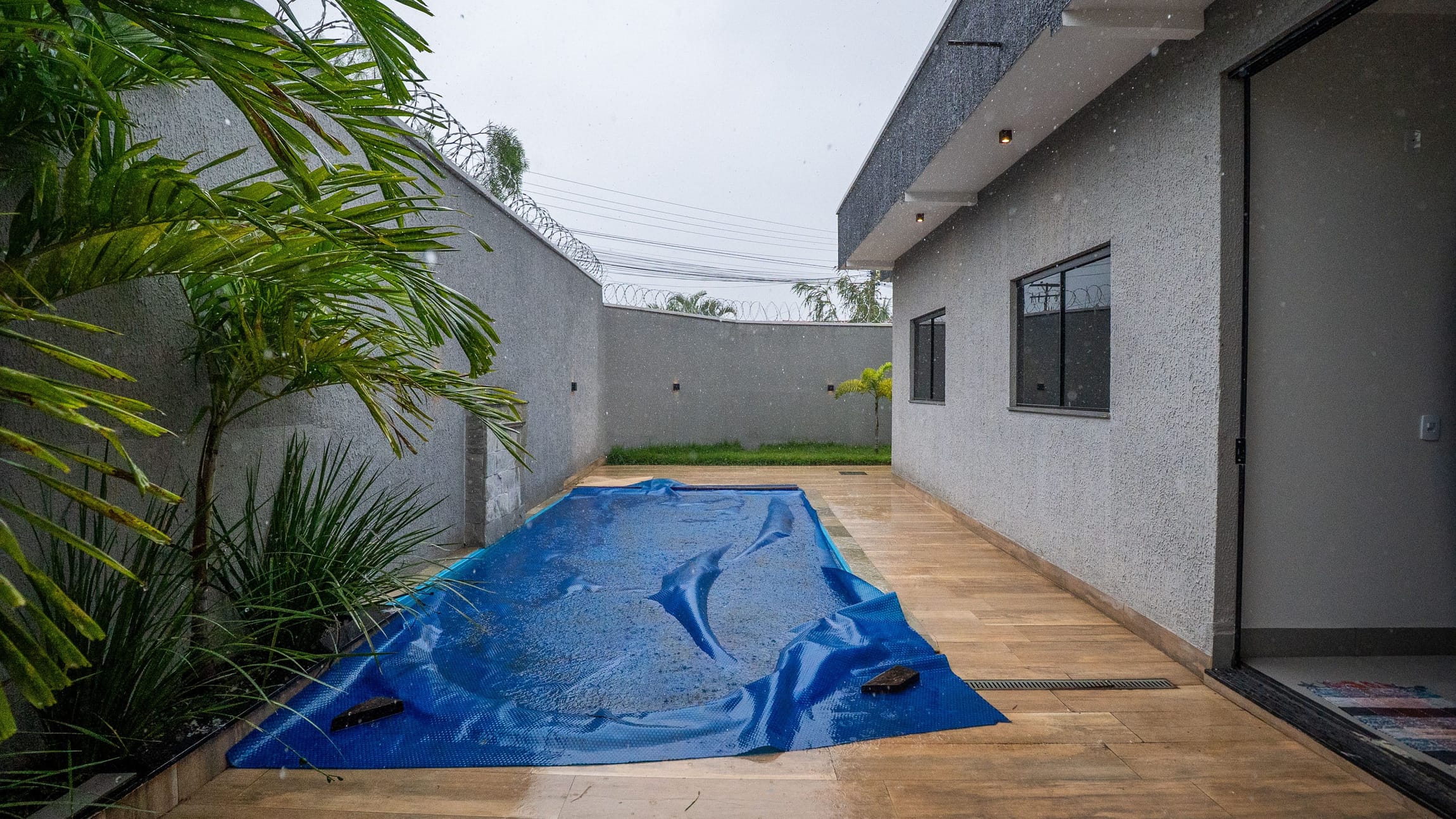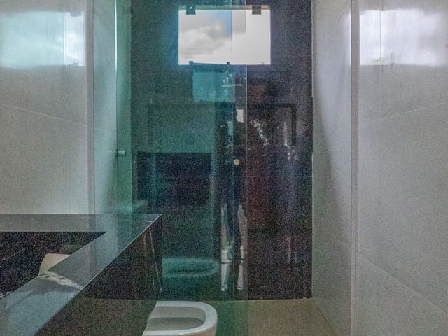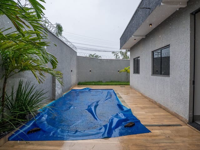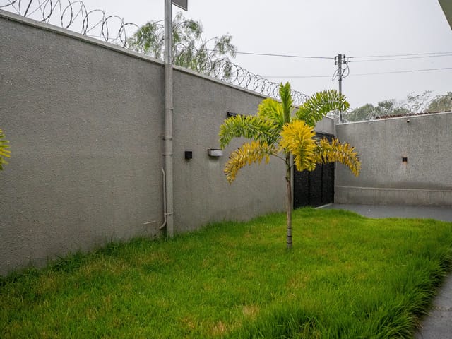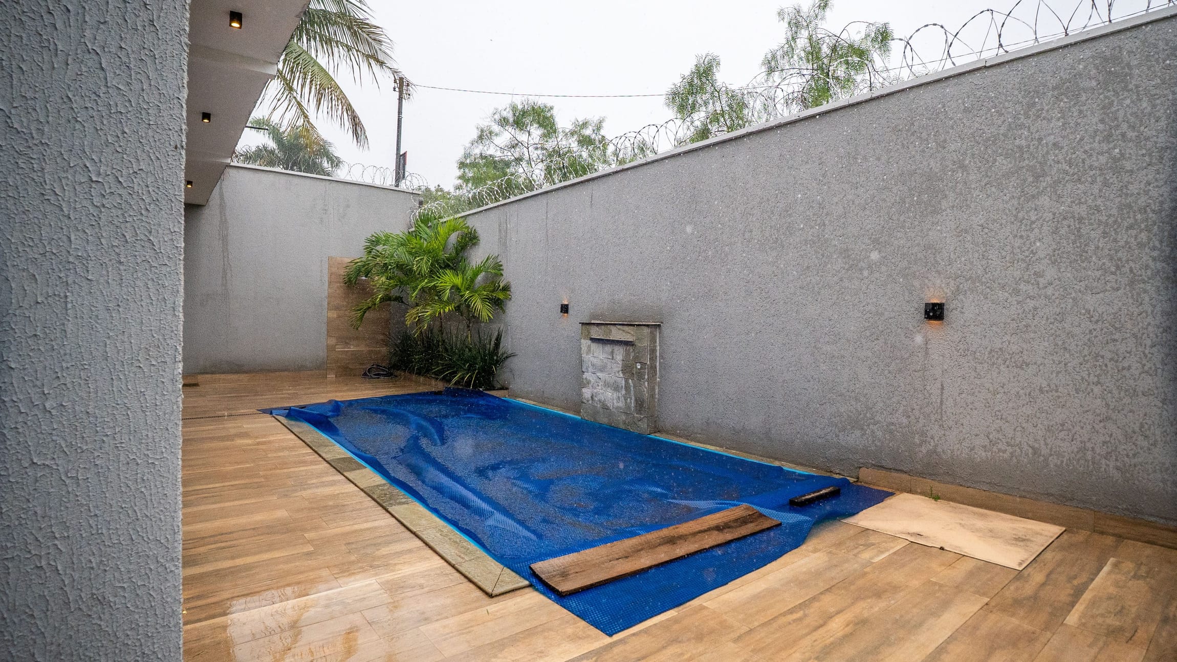 Pé direito alto na sala de TV. Com altura De 4.80 m