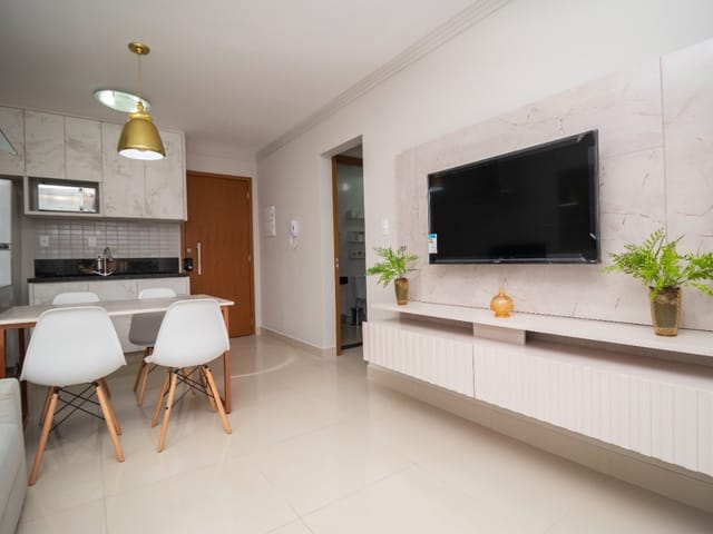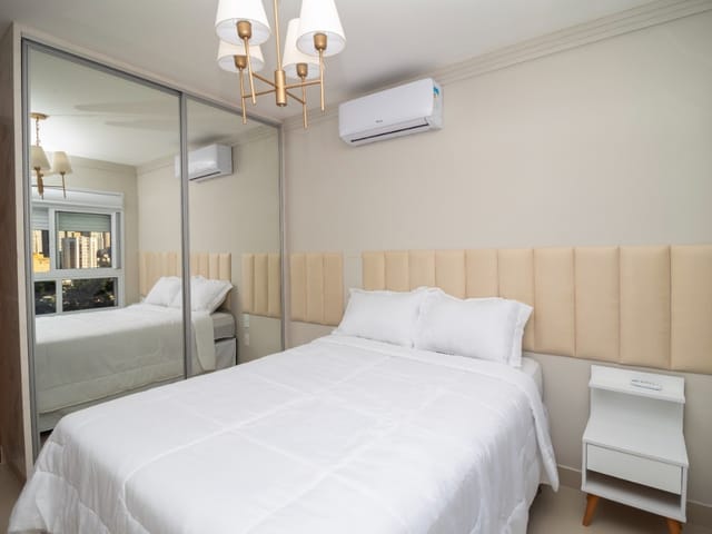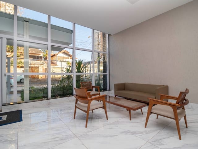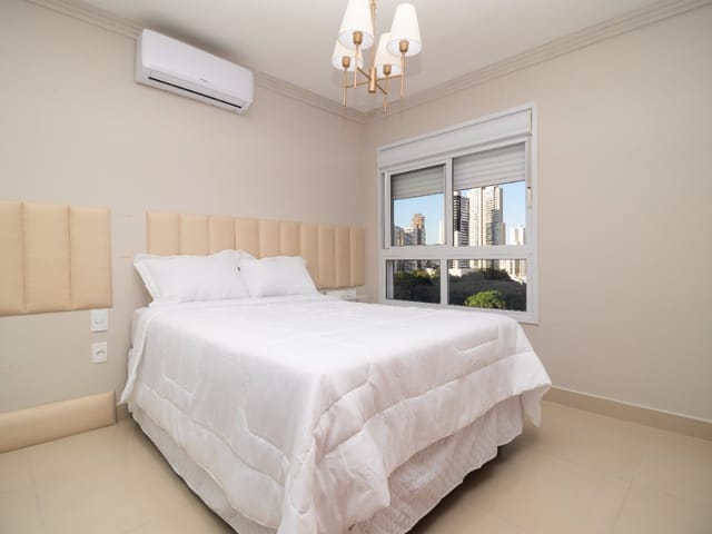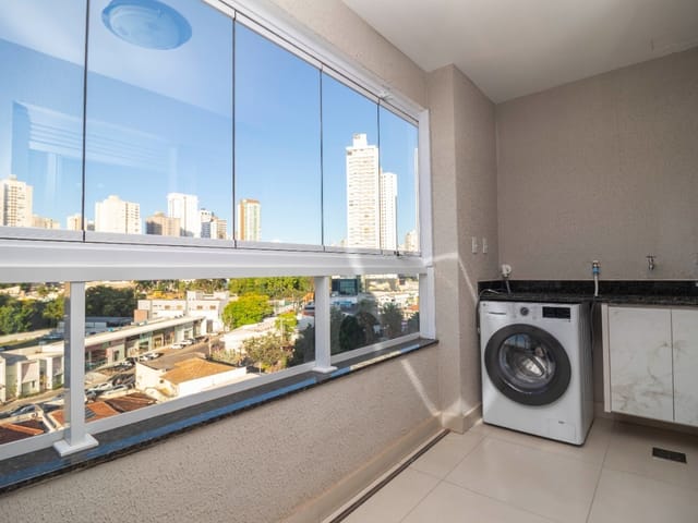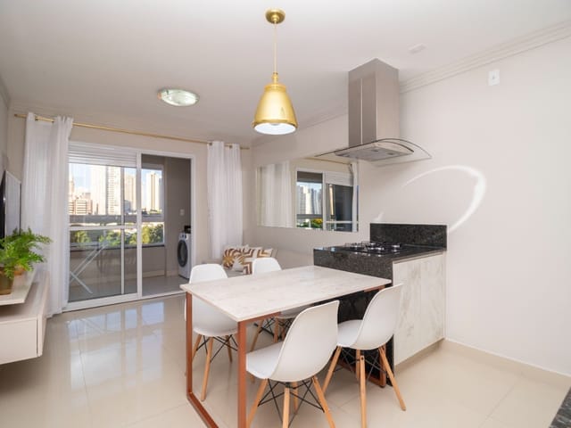 Flat mobiliado e decorado com suíte independentes, sacada com bancada, fechadura eletrônica ,1 vaga de garagem, a poucos metros do Goiânia Shopping e Parque Vaca Brava.