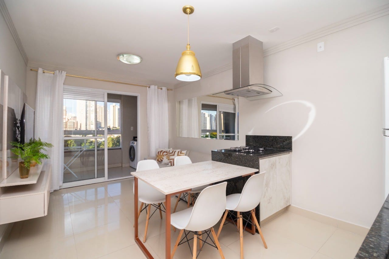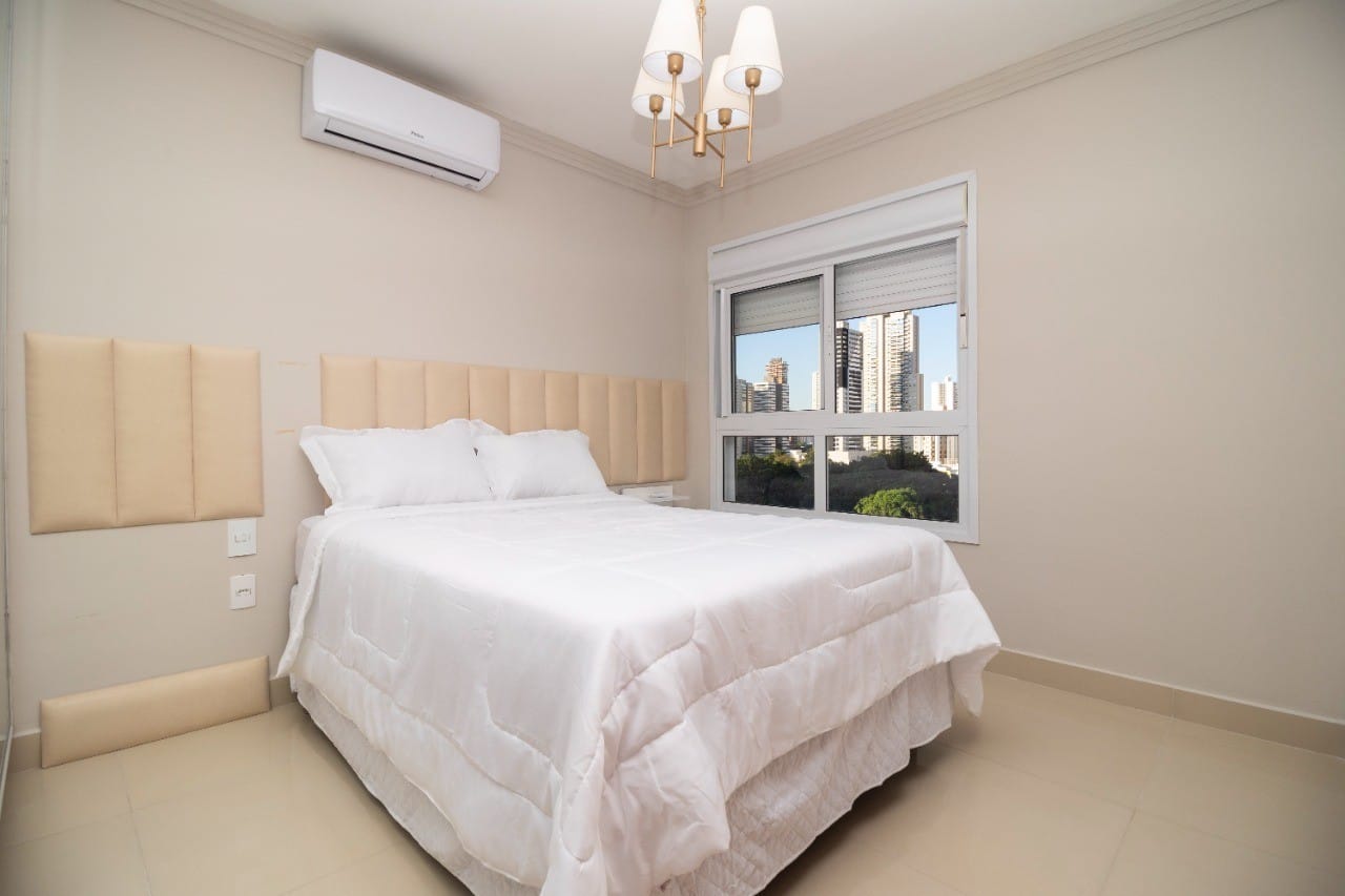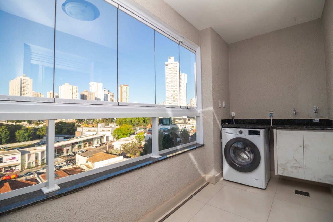 Flat mobiliado e decorado com suíte independentes, sacada com bancada, fechadura eletrônica ,1 vaga de garagem, a poucos metros do Goiânia Shopping e Parque Vaca Brava.