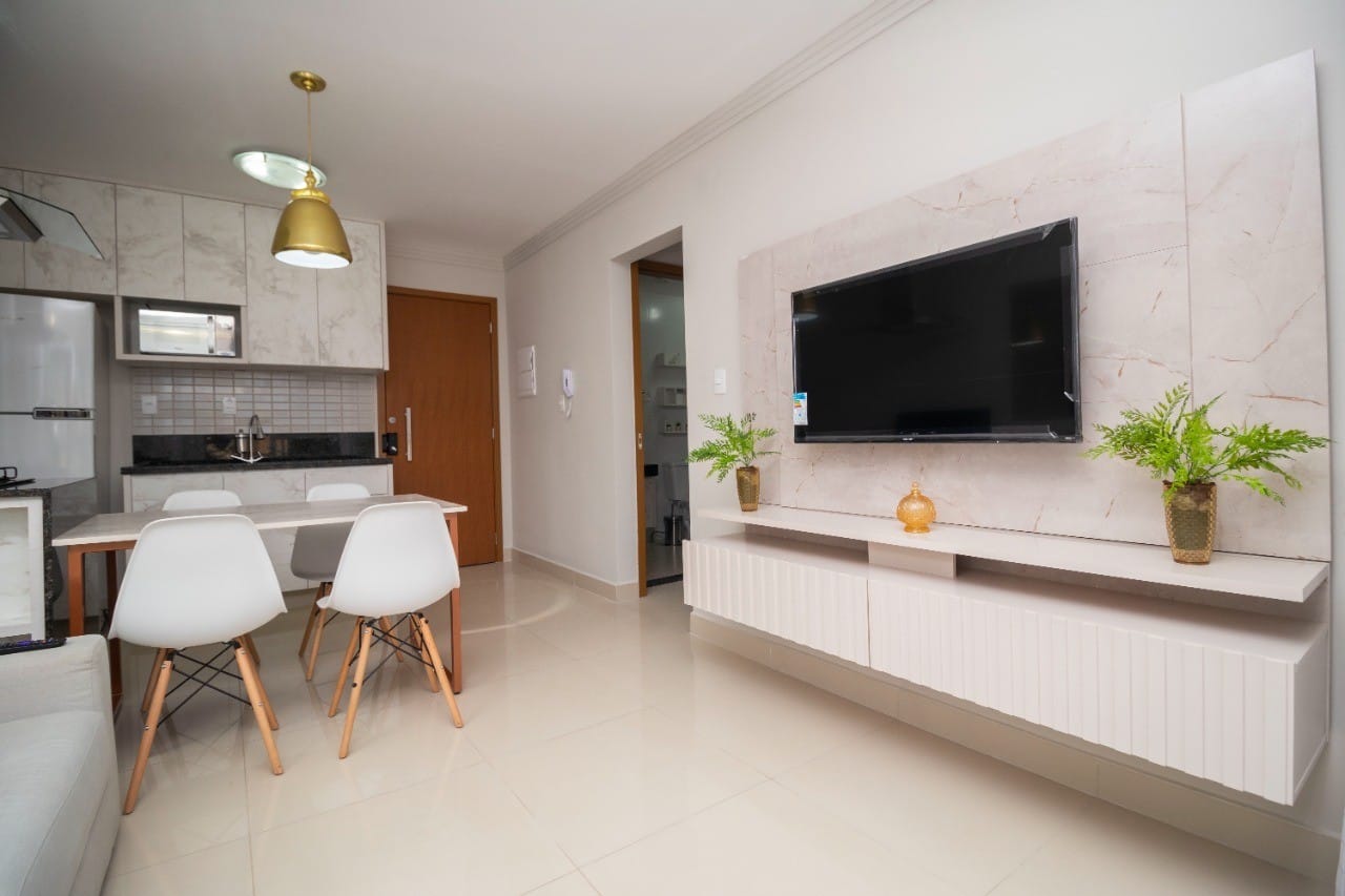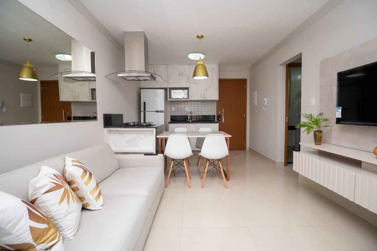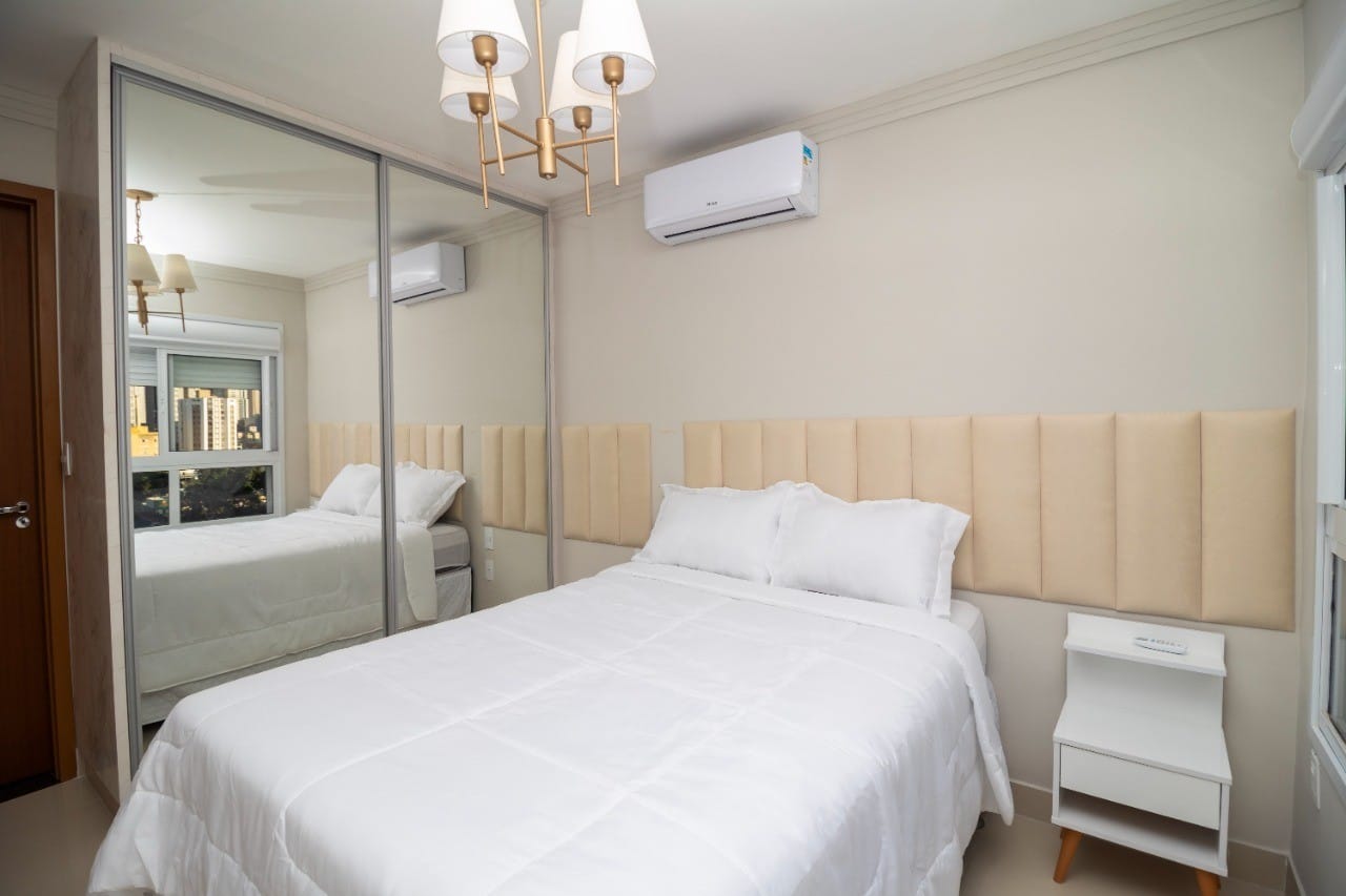 Flat mobiliado e decorado com suíte independentes, sacada com bancada, fechadura eletrônica ,1 vaga de garagem, a poucos metros do Goiânia Shopping e Parque Vaca Brava.
