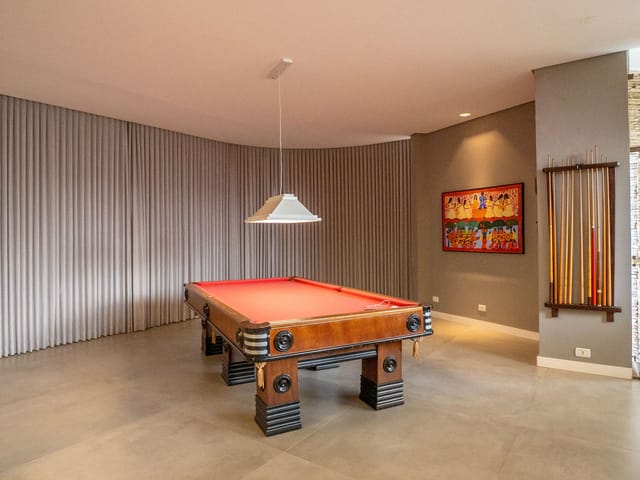 •	Salão de jogos com mesa de sinuca profissional;