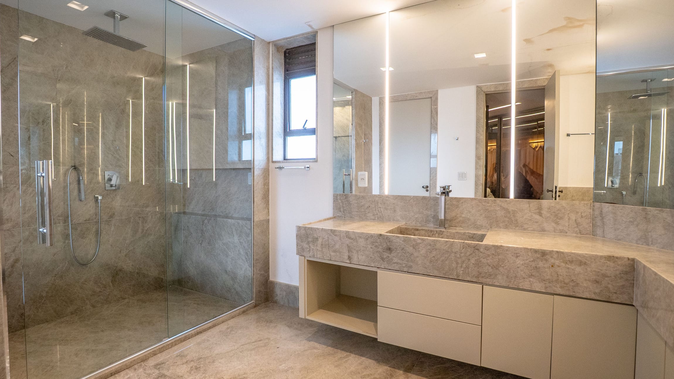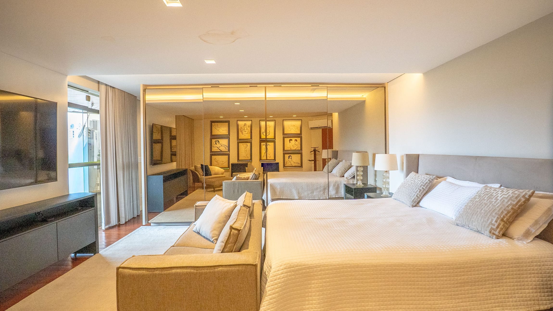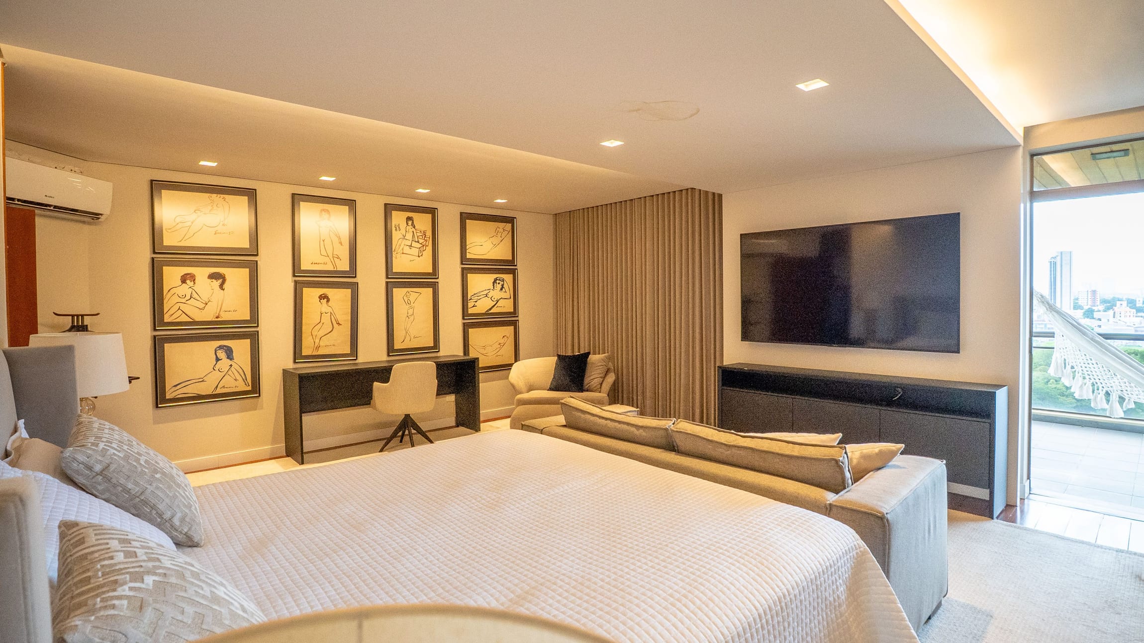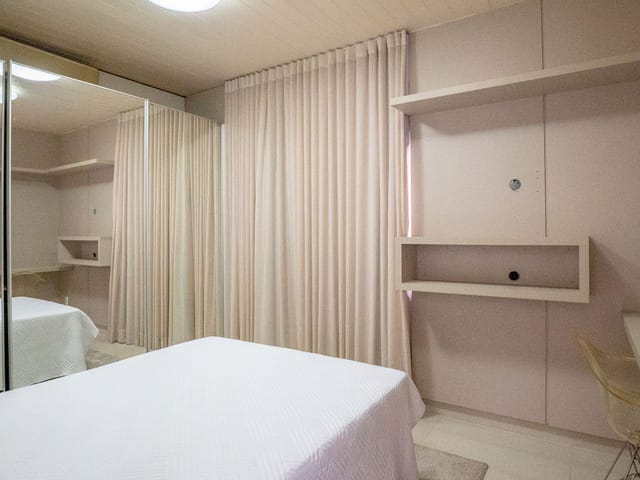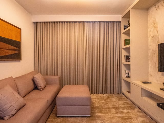 O imóvel será entregue semimobiliado, com móveis fixos sob medida e ar-condicionado instalado em todos os cômodos.