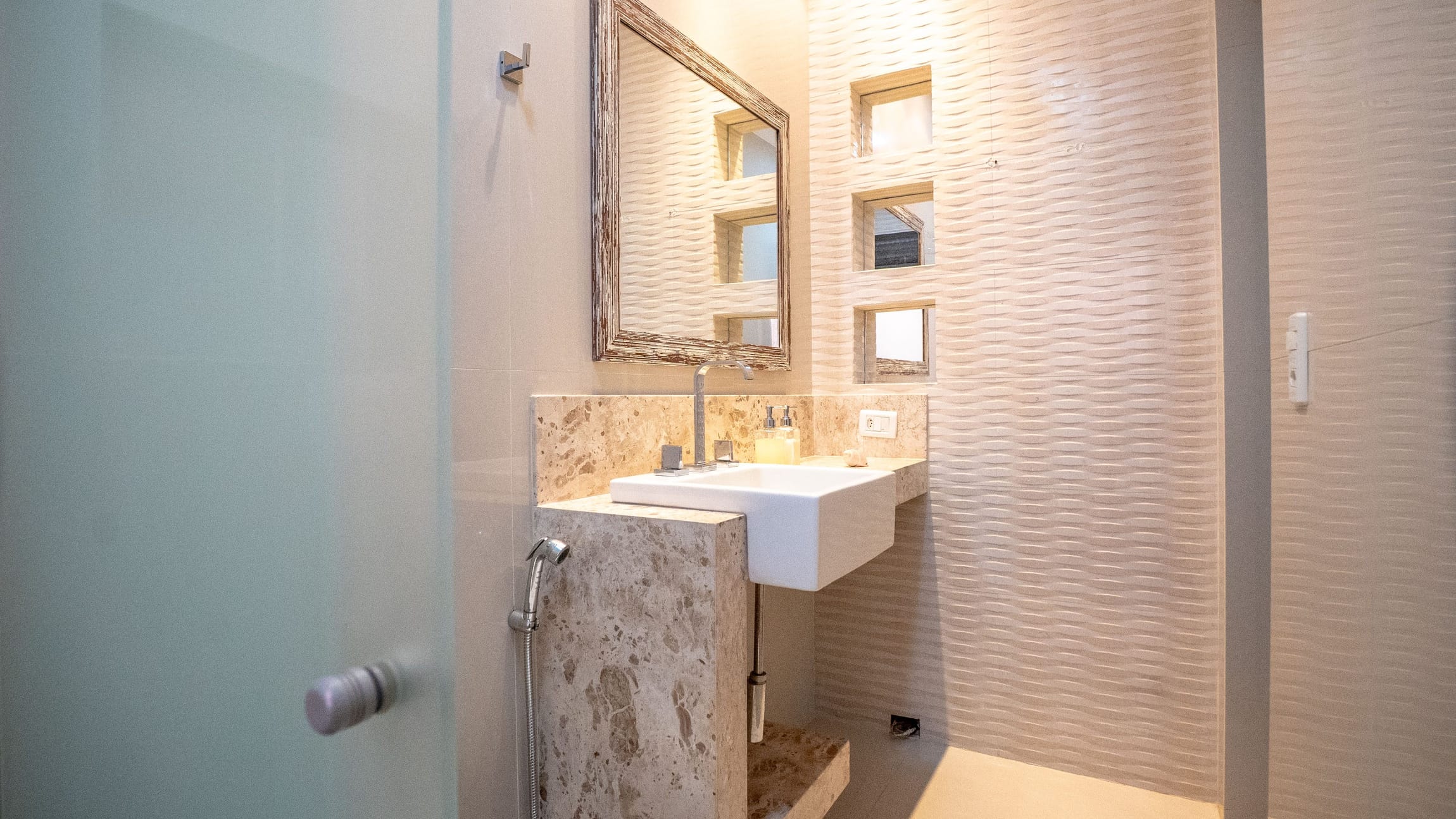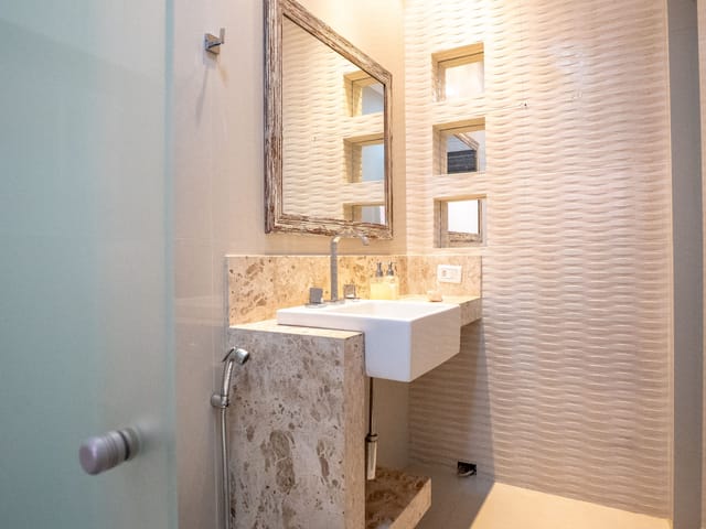 •	Lavabo elegante e copa-cozinha ampla;