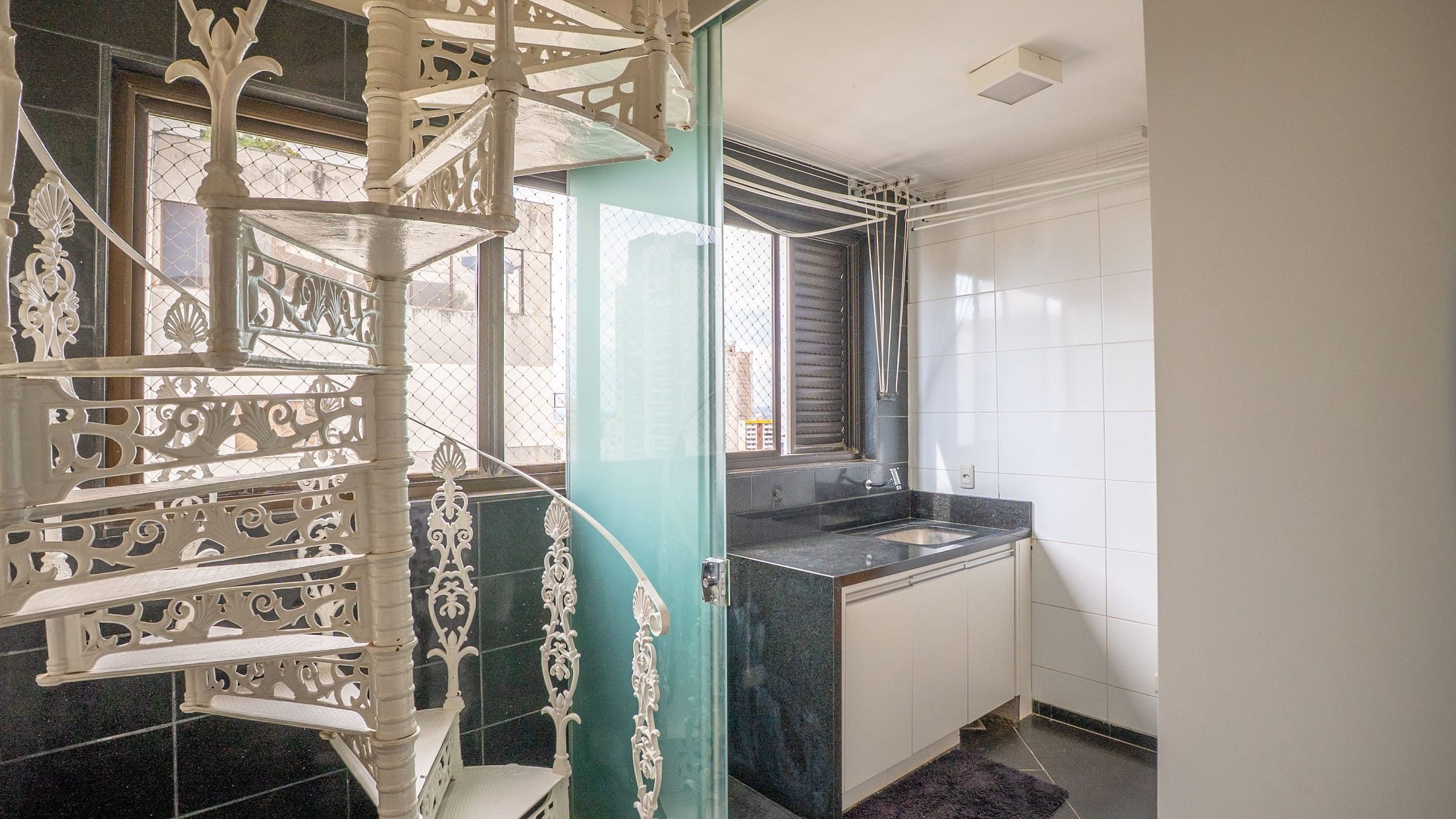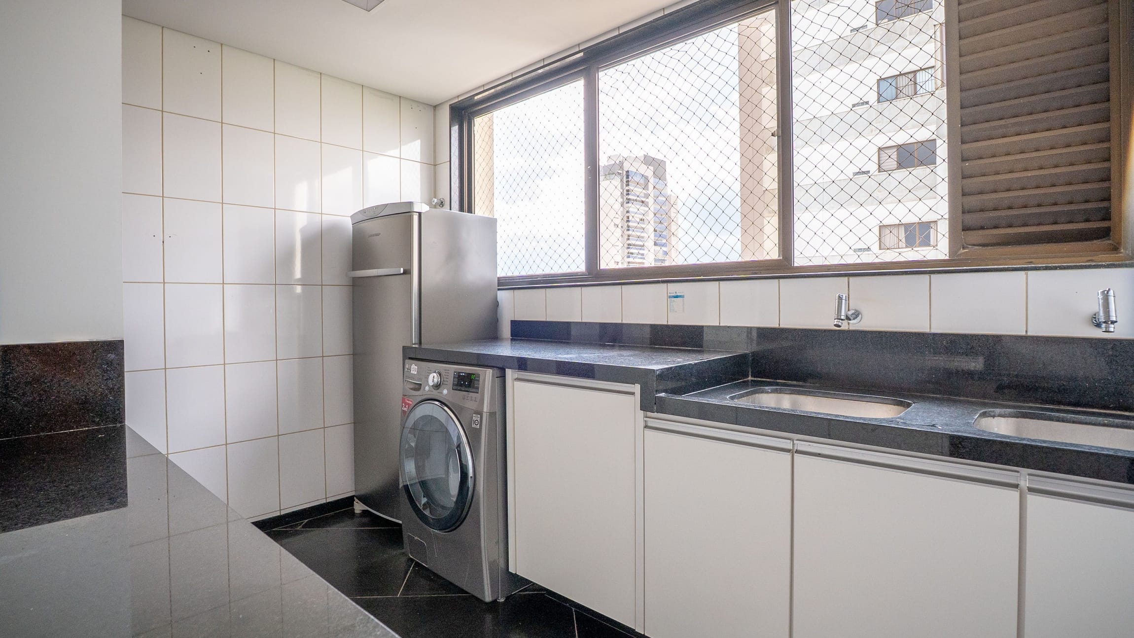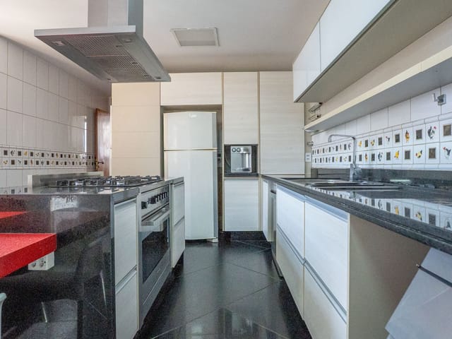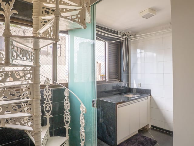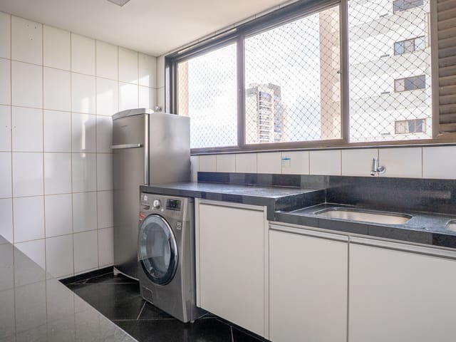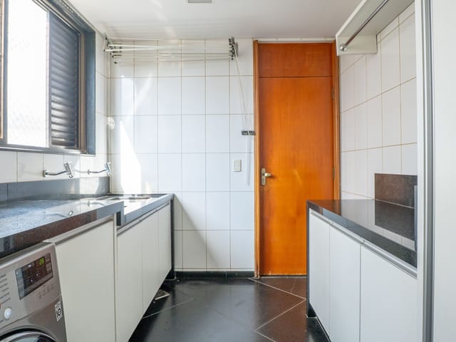 •	Sala de TV, área de serviço independente e dependência completa de apoio.