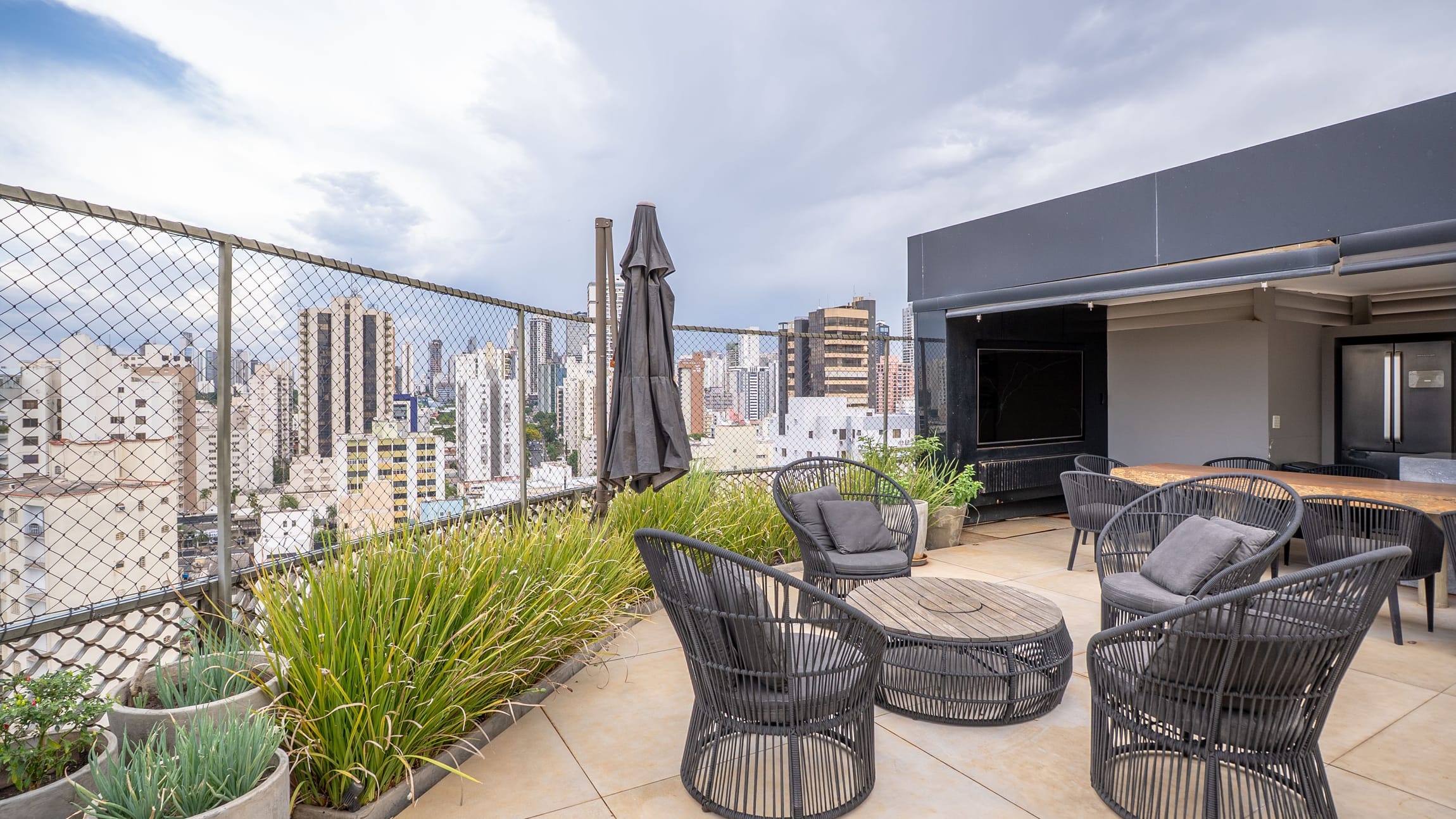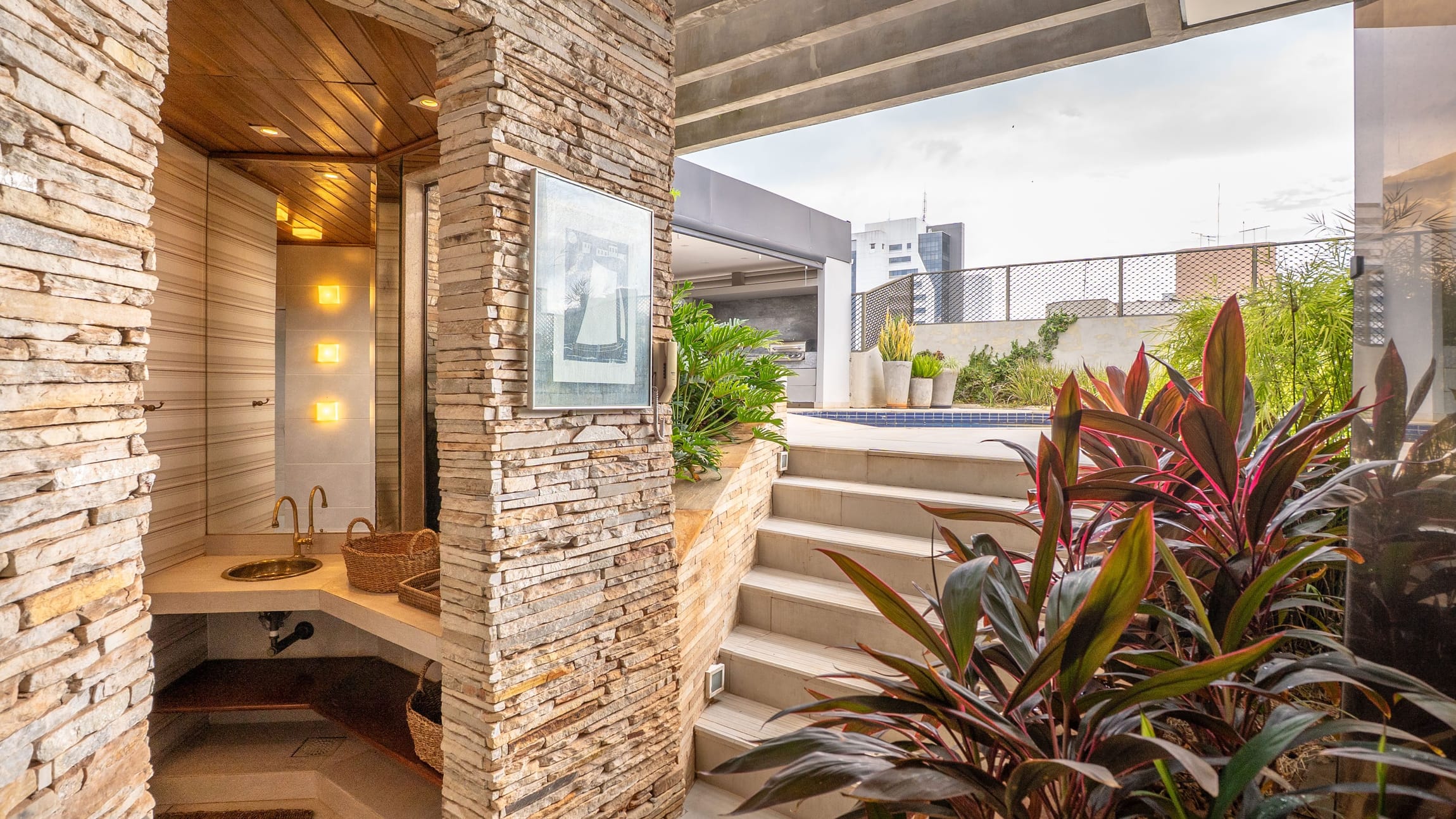 O espaço externo oferece um verdadeiro refúgio urbano: