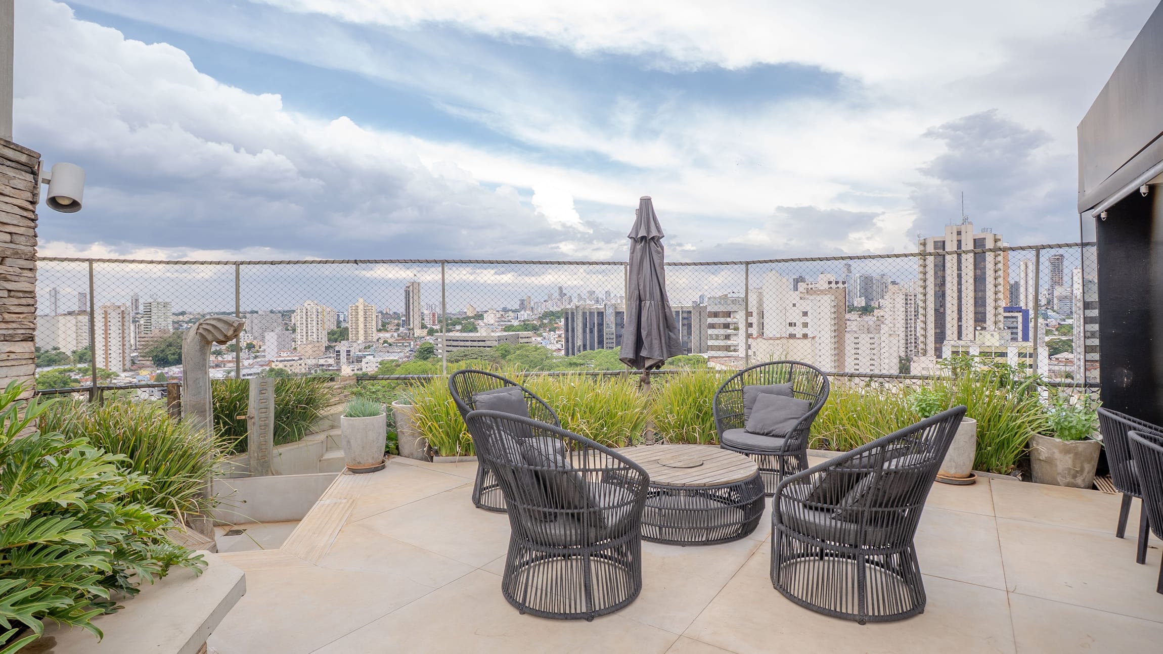 •	Deck panorâmico com piscina e jardim natural;