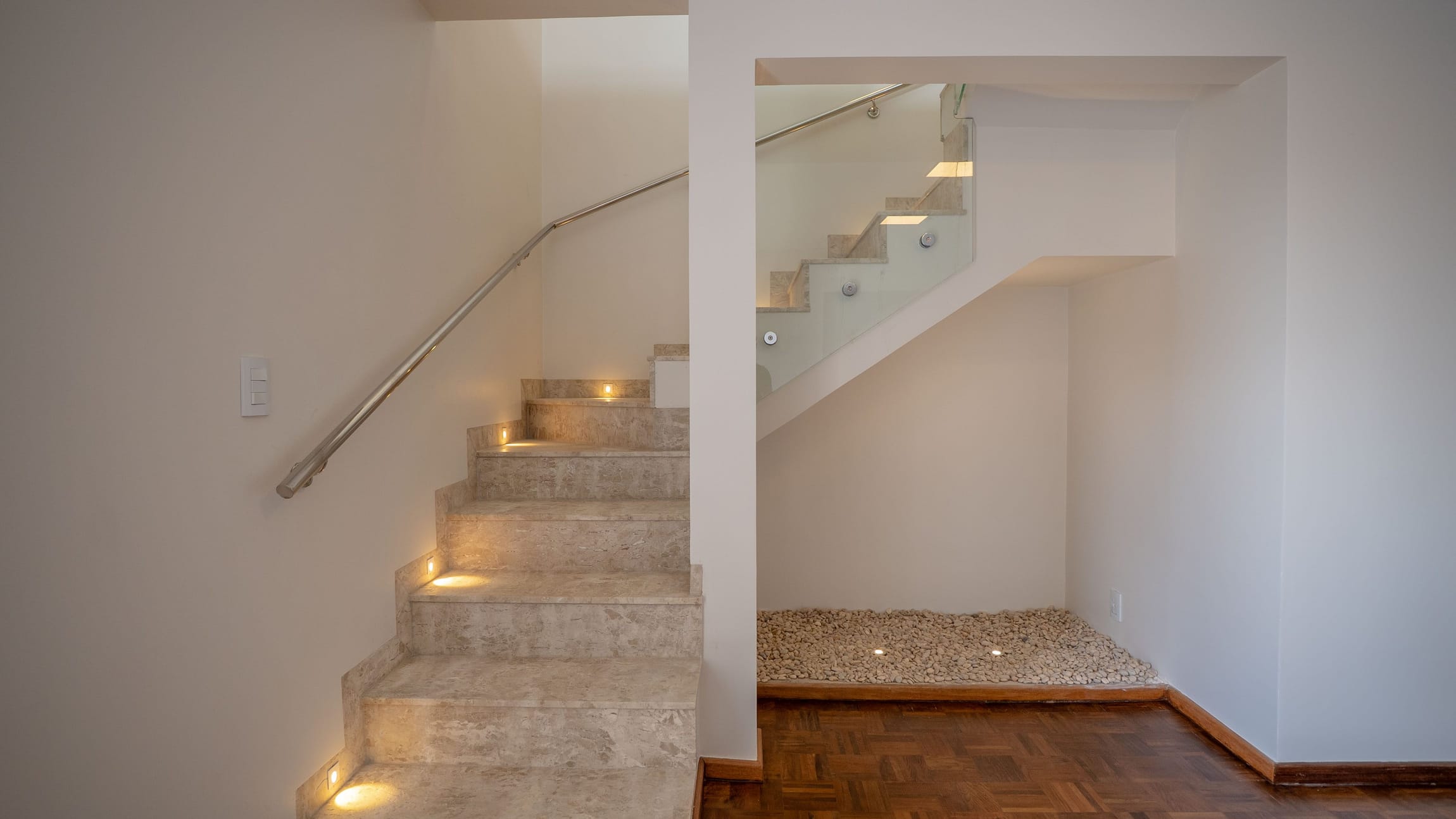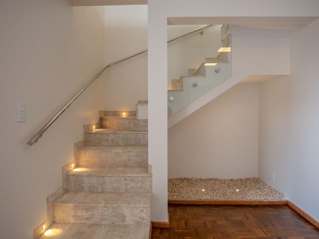 São 326 m² internos, distribuídos em dois pavimentos: