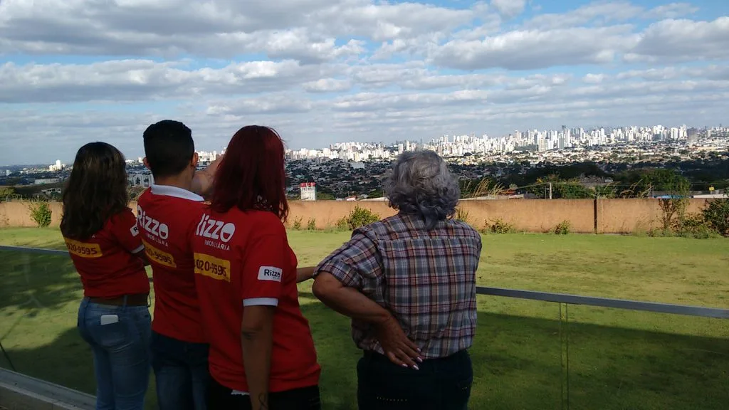 Os integrantes, Aline Freitas, Cassio dos Santos, Edu Martins, Ofelia Anastácio, Rubens Saraiva, Thaís Delmondes encantaram e envolveram juntos com à Professora Adelina, proprietária de um lote no nosso loteamento Alice Barbosa em Goiânia-GO.